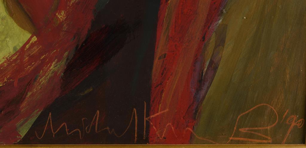 Öl/Tempera/Malkarton.Rechts unten undeutlich signiert, verso bezeichnet/betitelt mit Widmung für Hans Ackermann von 1999.Datiert: (19)90.