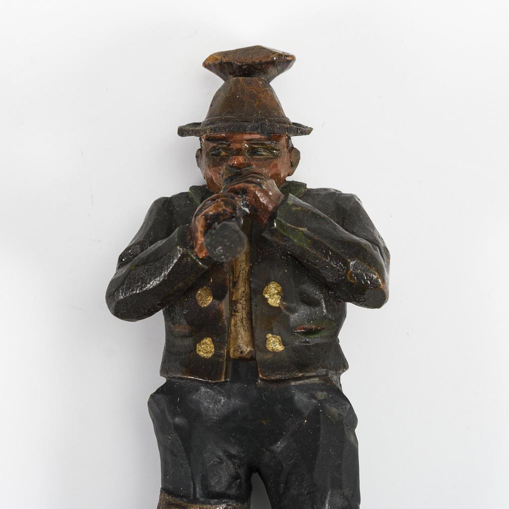Kleiderhaken mit geschnitzten Musikern.