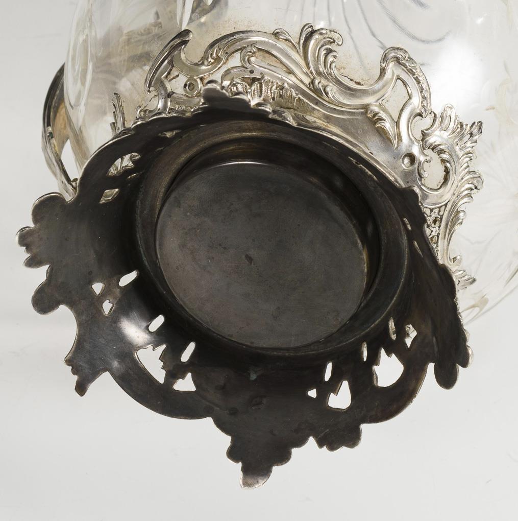 Floral beschliffener Klarglaskorpus mit reich reliefierter Silbermontierung.