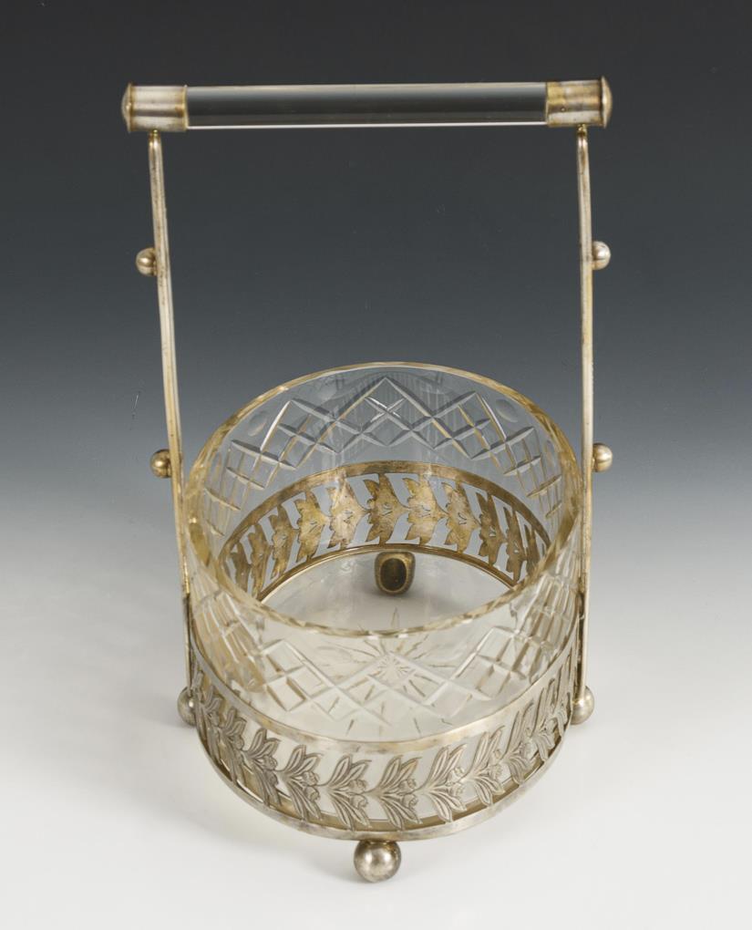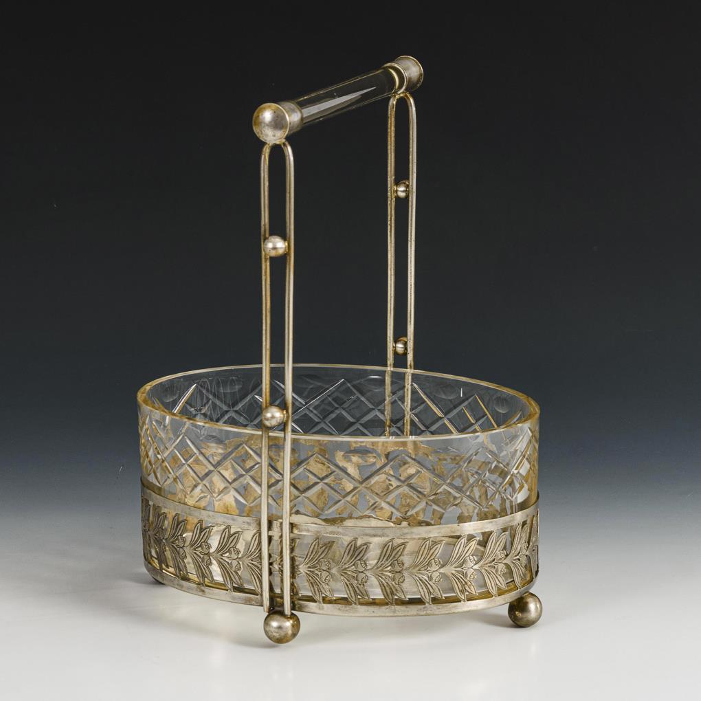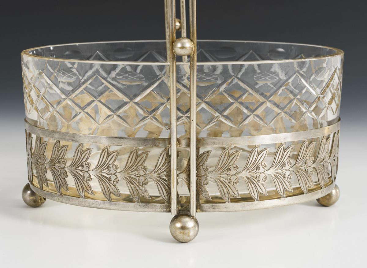 Ovale Glasschale mit versilberter Montierung. Geringe Altersspuren.