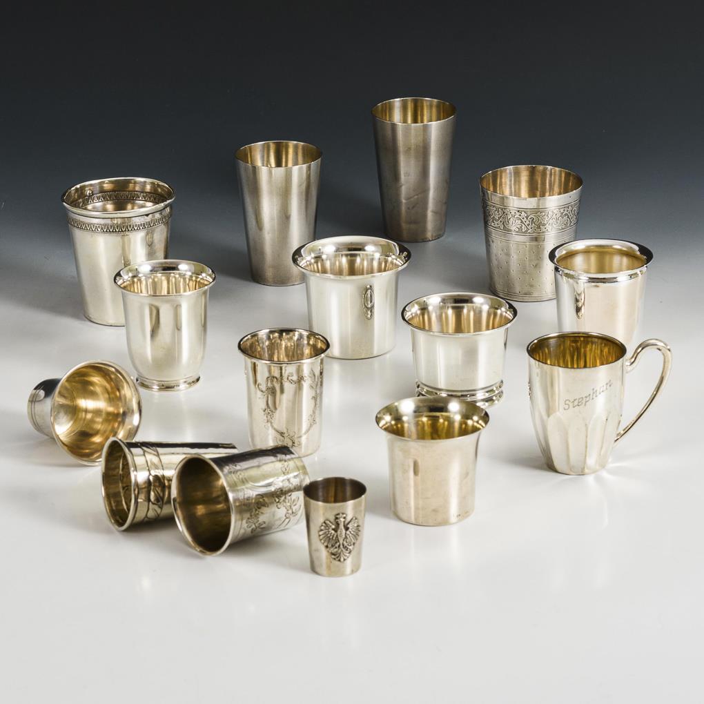 Verschiedene Becher, darunter Kopenhagen, Frankreich, Schweden. 1x mit Henkel. Teils gedellt.