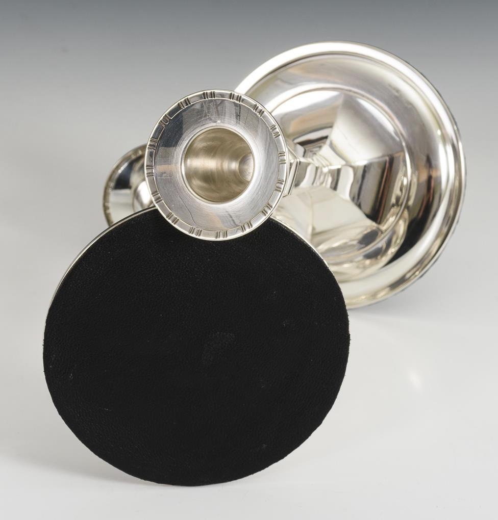 Schlichte Leuchter mit facettiertem Schaft, im Stil des Art déco. Kaum Gebrauchsspuren.