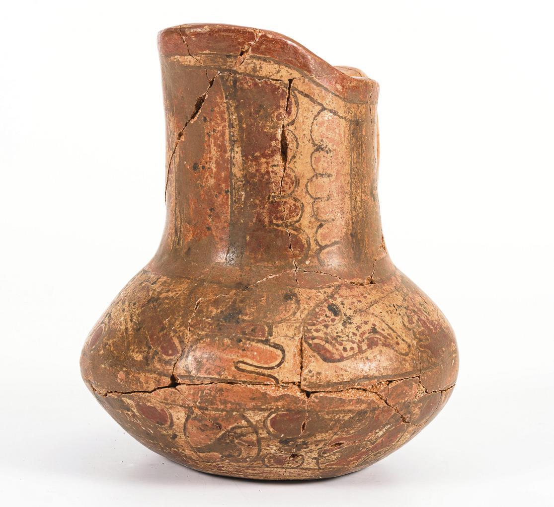 Roter Ton mit Bemalung. H 16 cm.