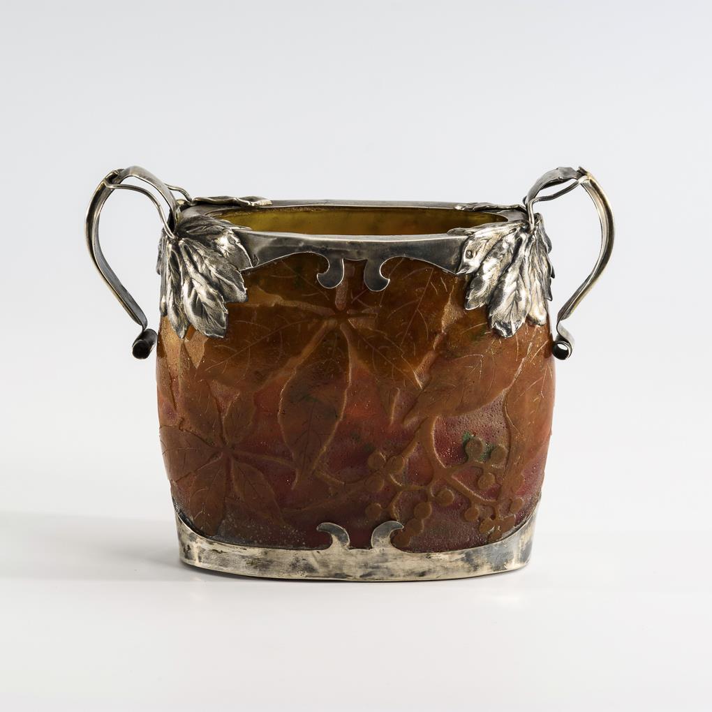 Jugendstil-Vase mit Silbermontierung. Daum.
