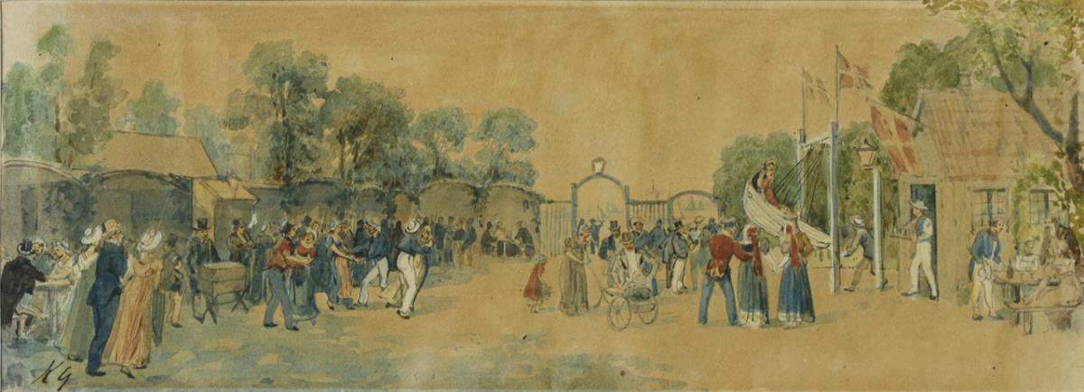 Verschiedene Ansichten von Kopenhagen mit Personen im Schnee, auf dem Jahrmarkt oder als einfache Fußgänger.