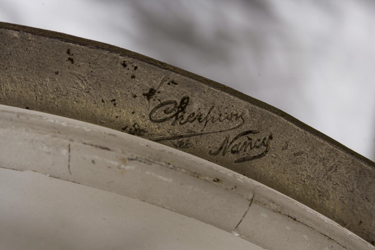 Ätzsignatur "Muller Fres Luneville", Metallgestell mit Ritzsignatur "Cherpion, Nancy". Um 1930. Frankreich.