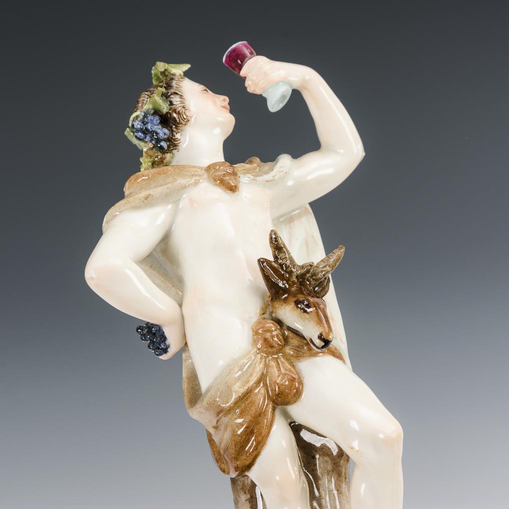 Bacchant mit Weinglas und Rehbockskopf. Kopf des Rehbockes restauriert, einige Weintrauben bestoßen.