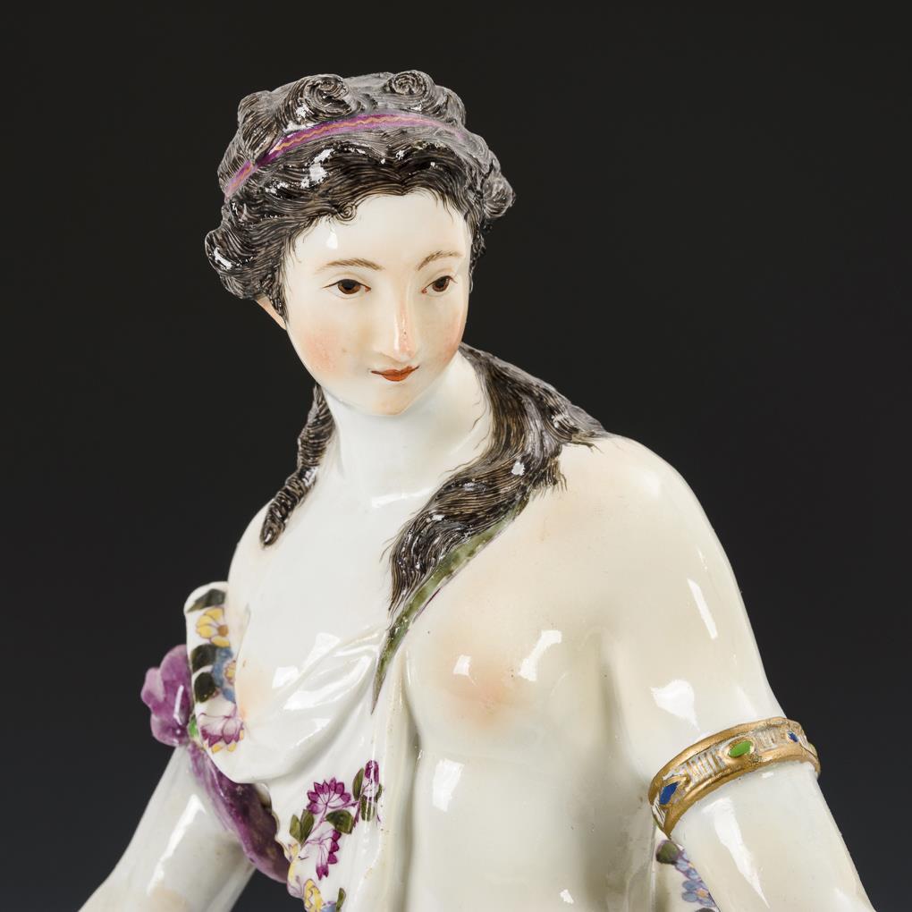 Schwertermarke am Sockel, um 1750. Modell-Nr.: 845. Figur aus dem Tafelaufsatz "Das Urteil des Paris". Entwurf: 1747. KAENDLER, Johann Joachim(1706 Dresden - 1775 Meißen)