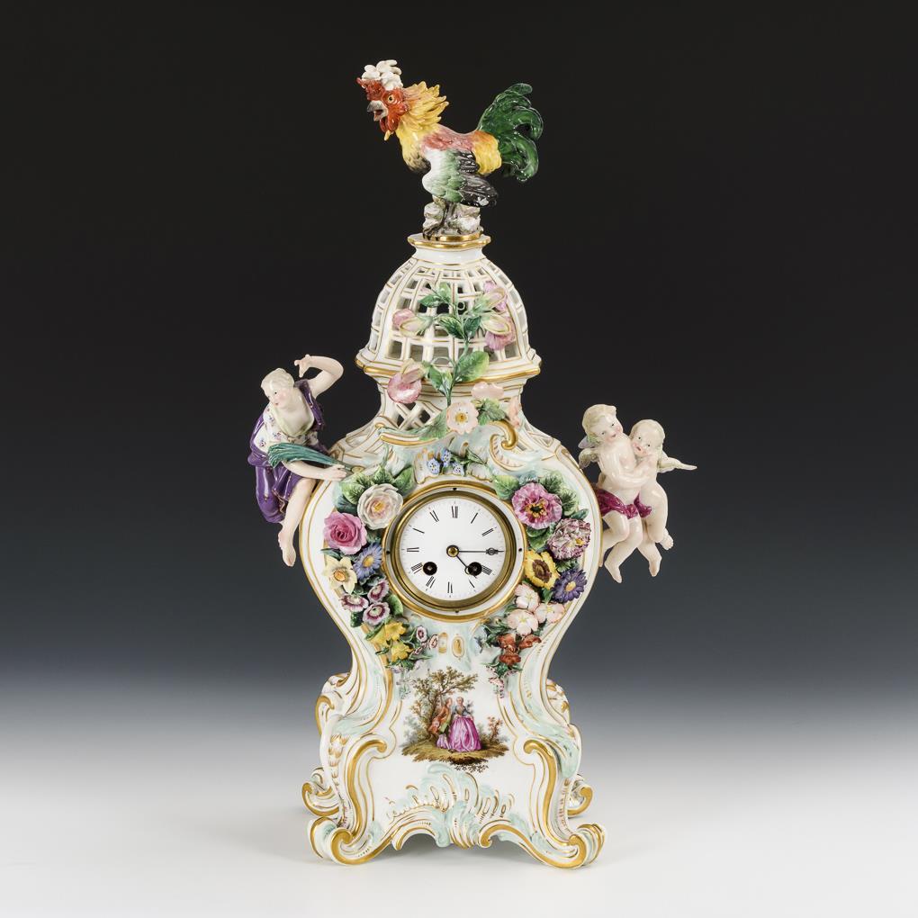 Porzellanuhr mit Hahn. Meissen.