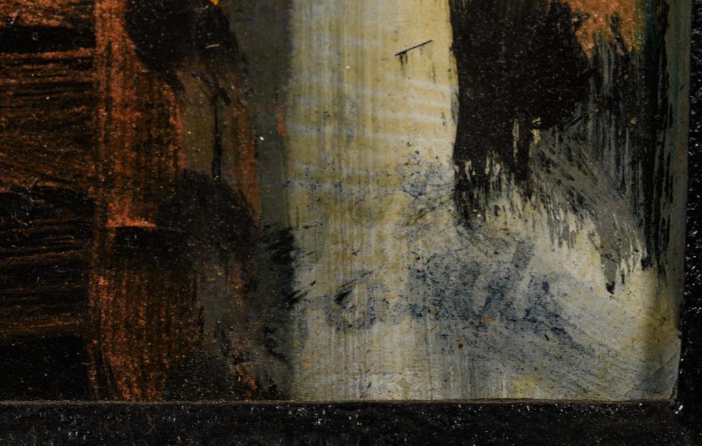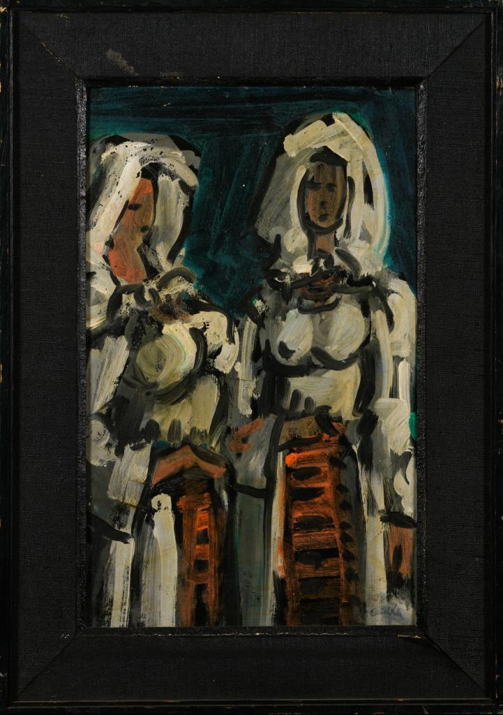 Abstraktes Bildnis zweier Frauen in Tracht. Minimale Altersspuren.