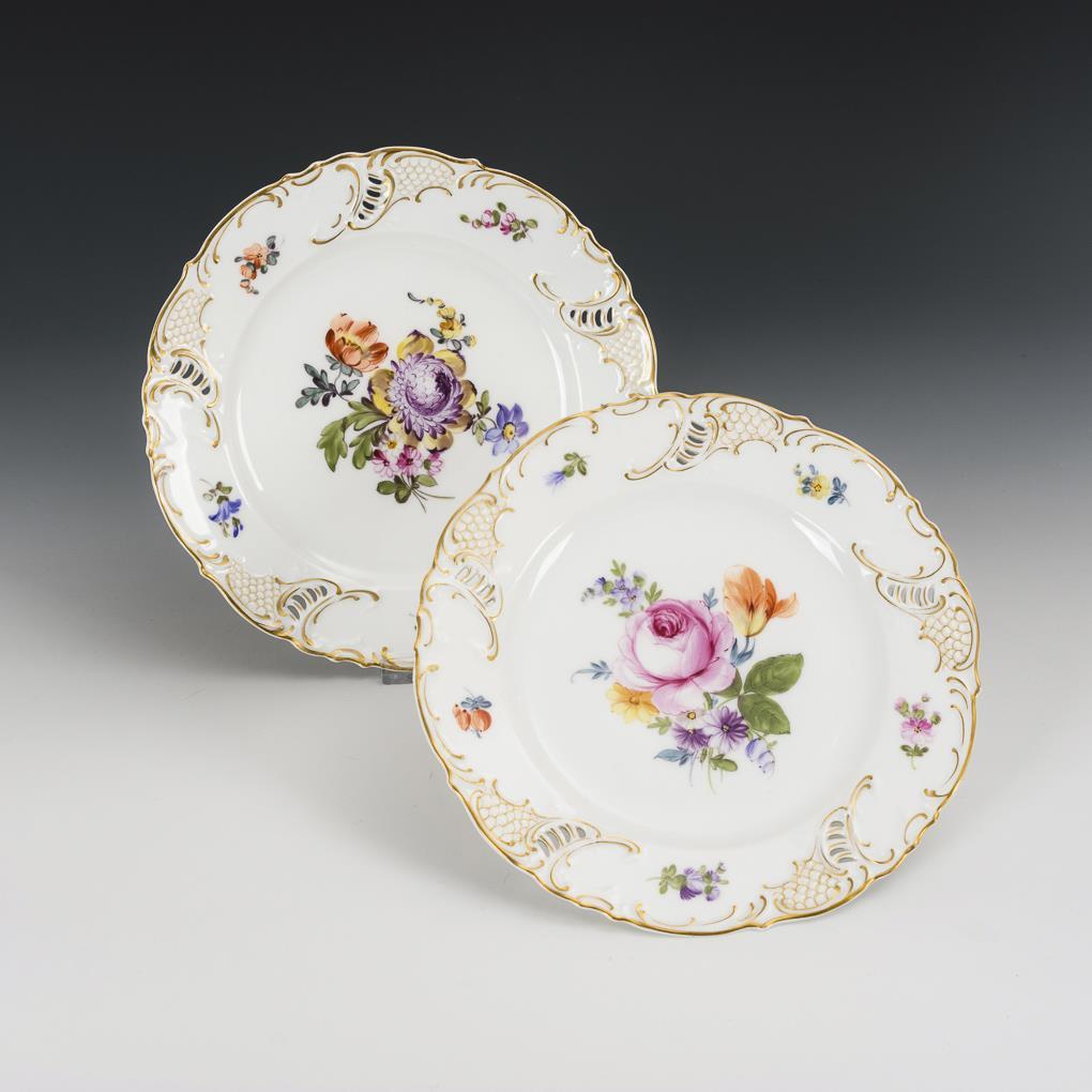 2 Teller mit Blumenmalerei. Nymphenburg.