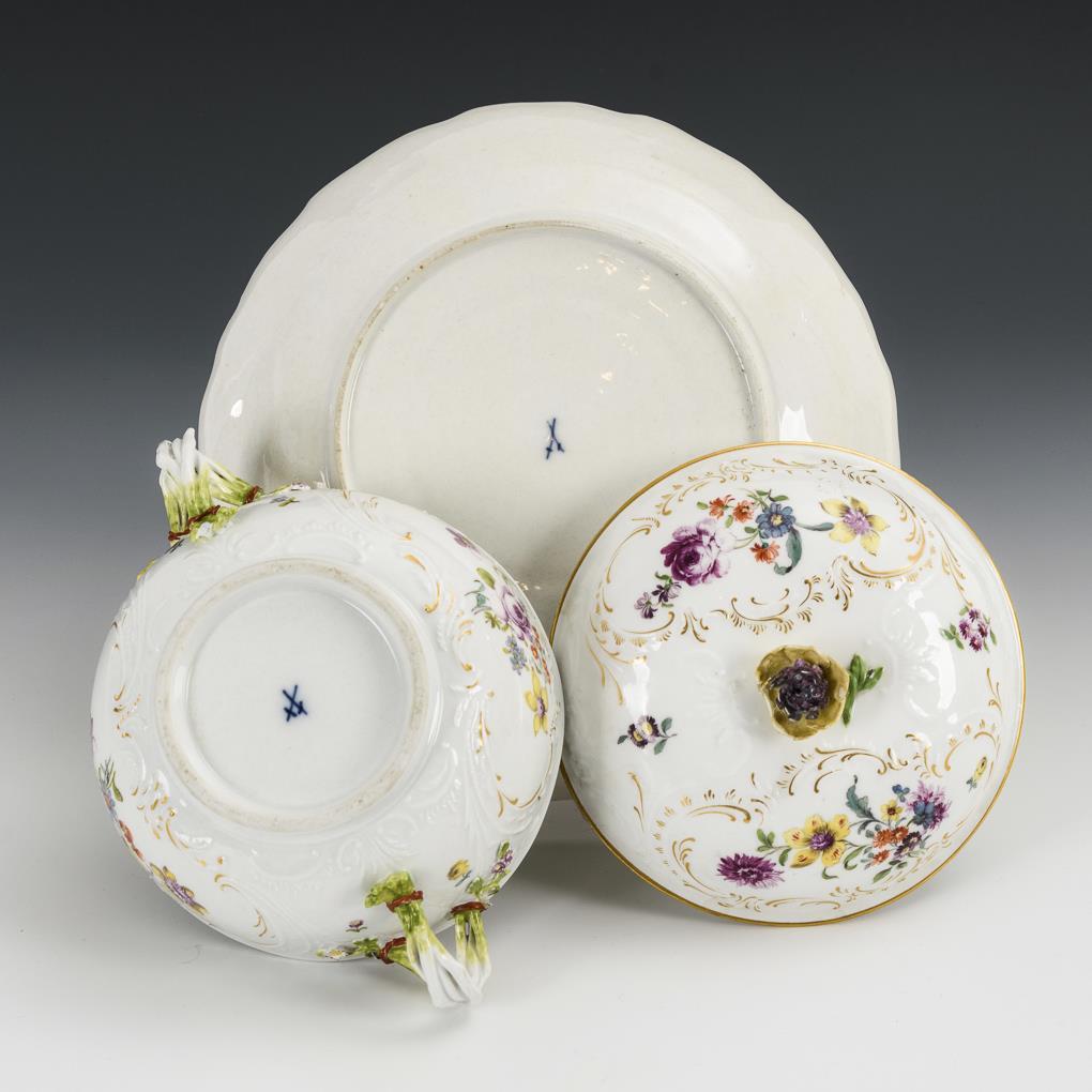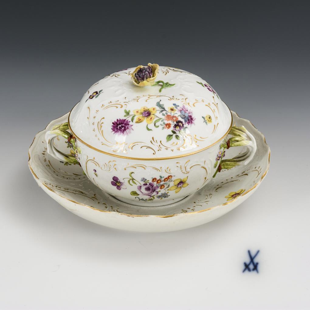 Wöchnerinnenterrine mit Blumenmalerei. Meissen.