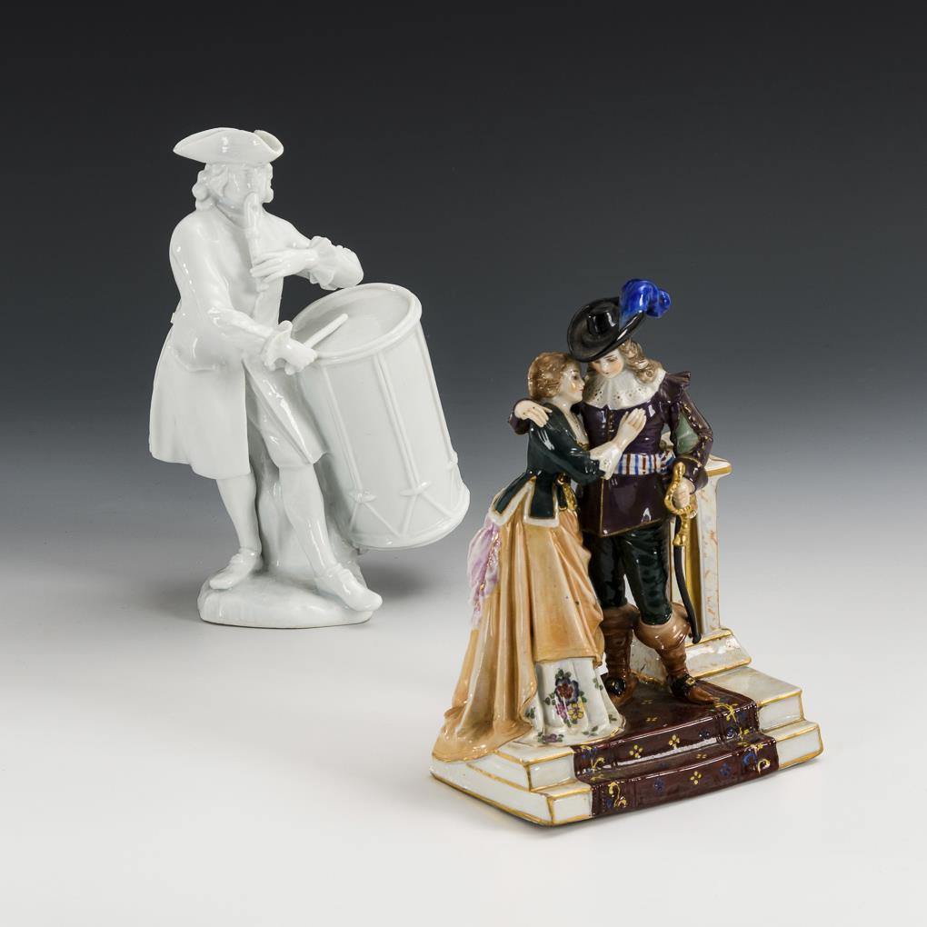 1x Soldat mit Trommel und Flöte. / 1x ein sich umarmendes Renaissancepaar.