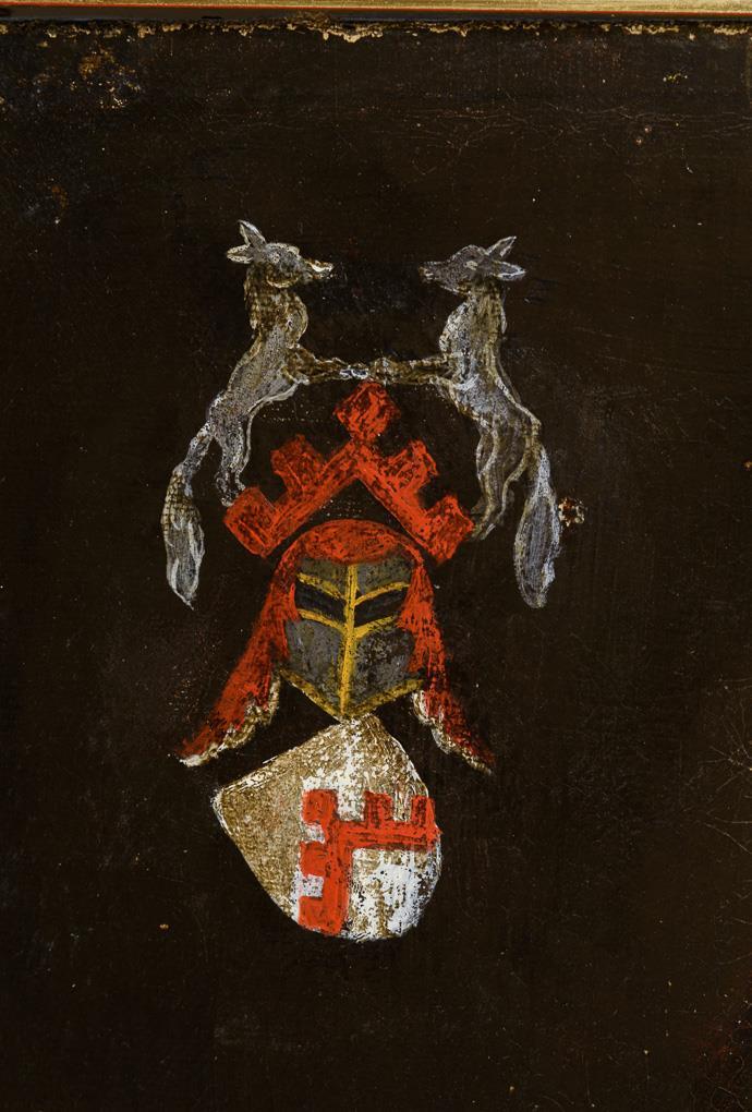 Herrenporträt mit zwei Adelswappen