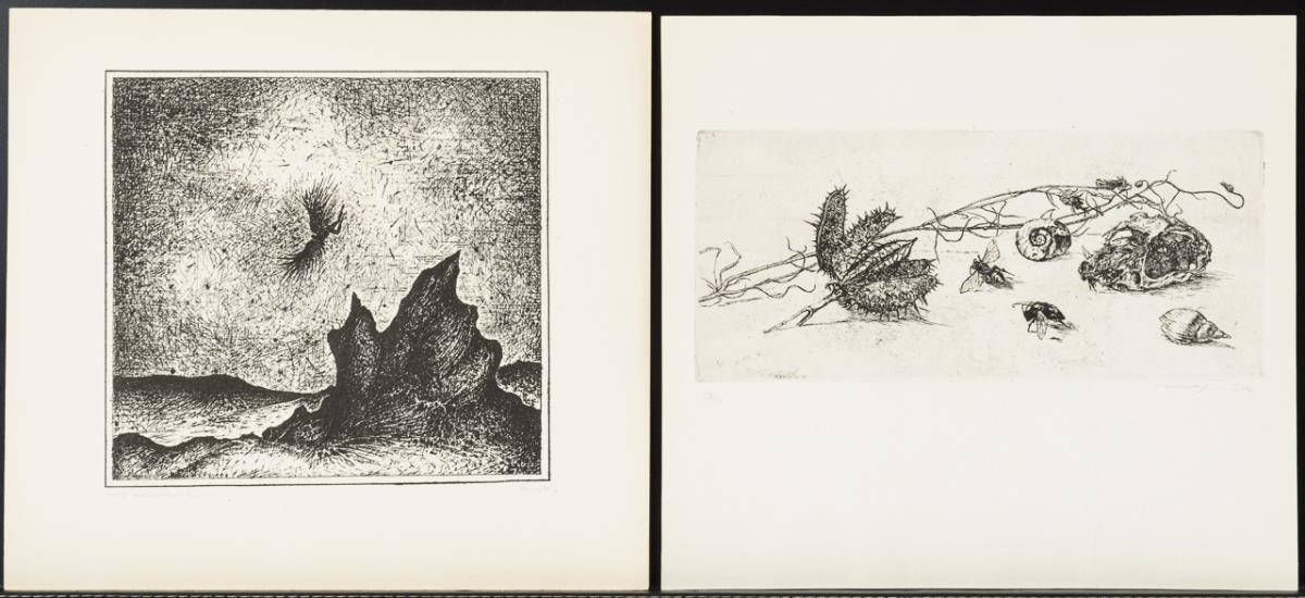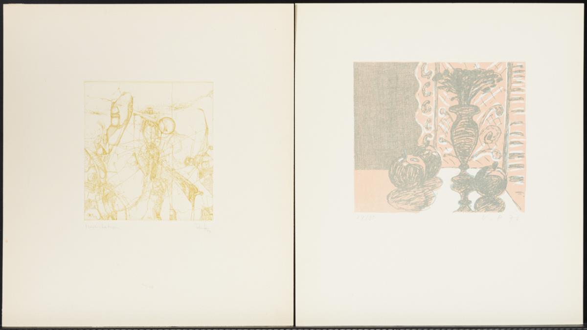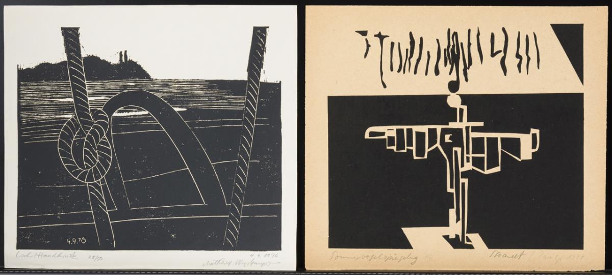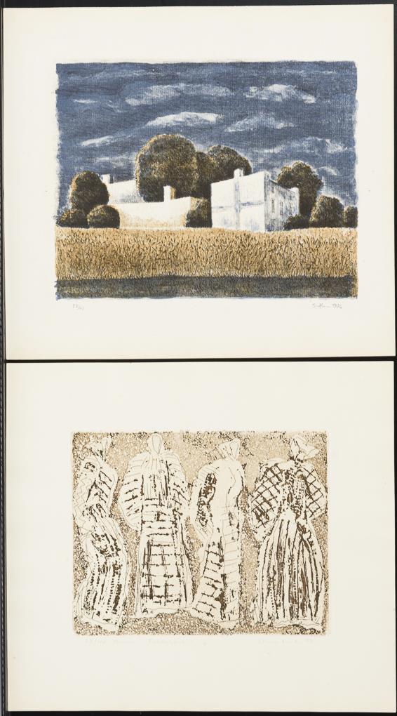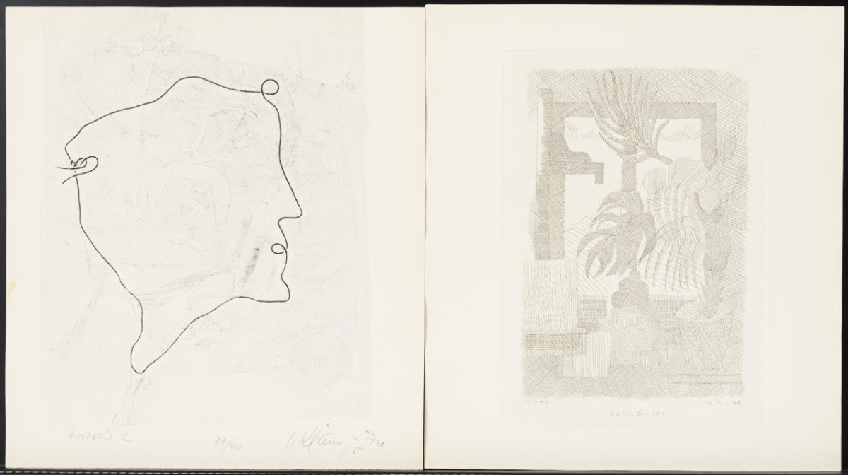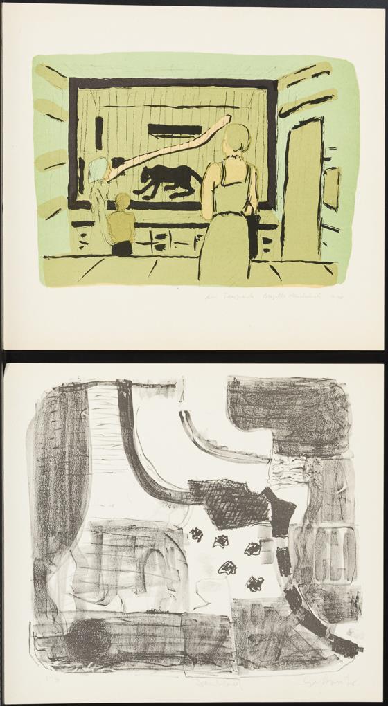 2 Zinkografien, 5 Radierungen, 1 Holzschnitt, 5 Lithografien, 1 Materialdruck, 3 Linolschnitte. Je mit Bleistiftsignatur, verso nummeriert 89 - 105. 1 von 40 Exemplaren.