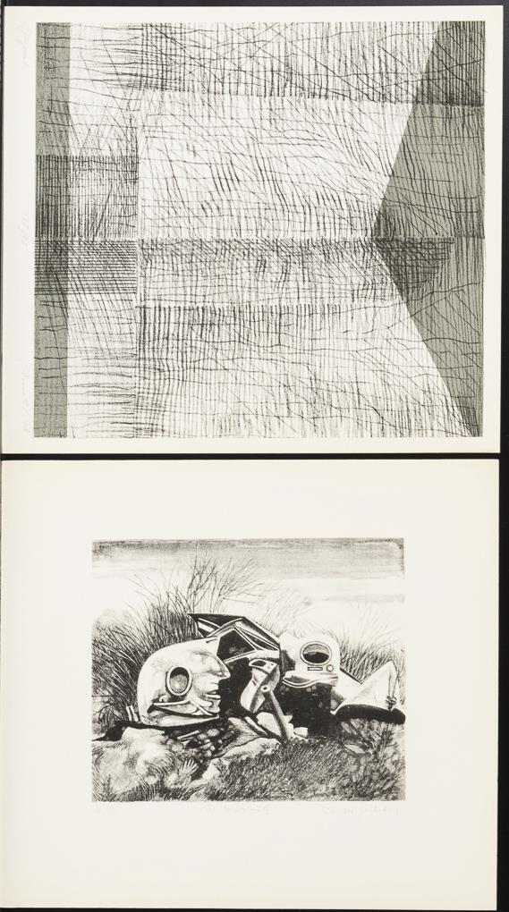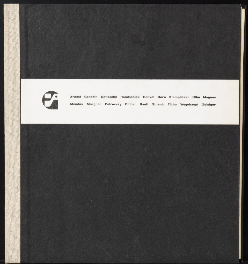 Sehr seltene, vollständige Mappe mit 17 grafischen Arbeiten von Künstlern der DDR, herausgegeben von Jürgen Schweinebraden: Ingo Arnold, Dieter Gerbeth, Dieter Goltzsche, Brigitte Handschick, Günther Horn, Friedrich B. Henkel, Gerhard Klampäckel, Dankwart Kühn, Klaus Magnus, Hans Mendau, Michael Morgner, Wolfgang Petrovsky, Volker Pfüller, Thomas Ranft, Matthias Wegehaupt, Hans Ticha, Jürgen Strandt & Erhard Zeisiger (Kollektivarbeit); 4 Beiblätter; in originaler Klappmappe. Mappe mit leichten Gebrauchsspuren.