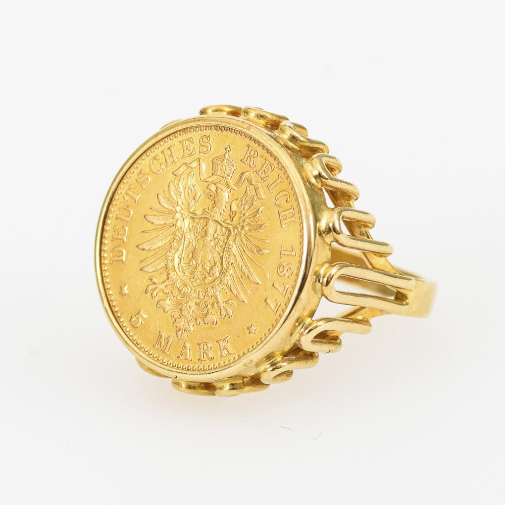 Gelbgold 585 gestempelt, Münzgold 900. Münze Ø 17,0 mm. Ringgröße 51. 6,1 g..
