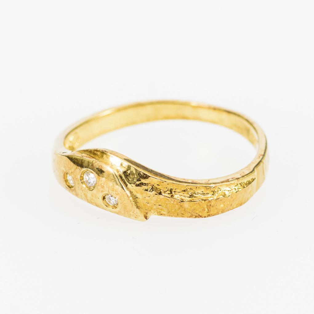 Schmaler Bandring mit 3 kleinen, eingelassenen Brillanten.