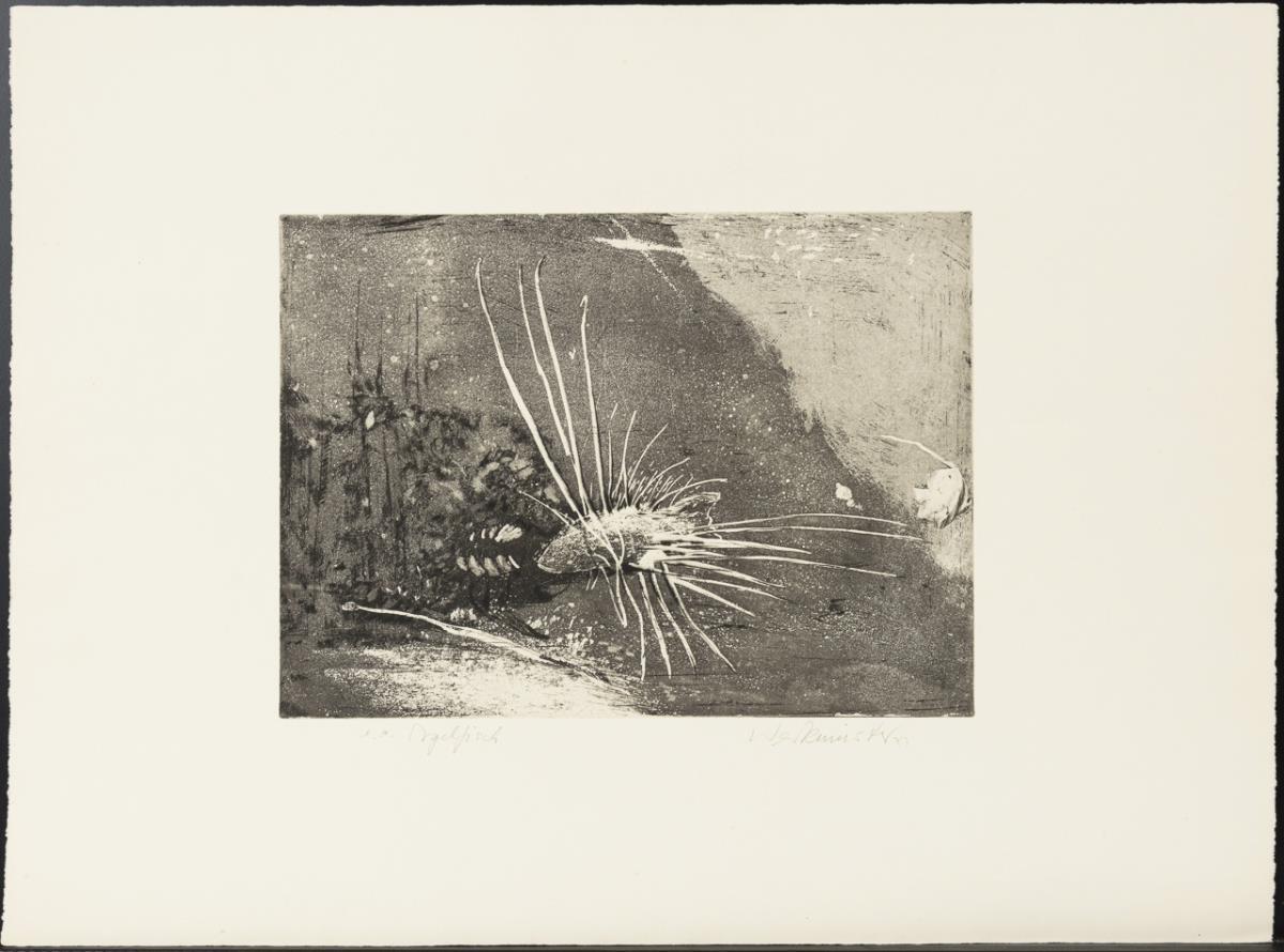 "Igelfisch", 48,5 x 65 cm, Künstlerexemplar, [19]71 | "Lofoten IV", 48,5 x 65 cm, Exemplar: 92/100, [19]75, leicht beschädigt | "Totes Zebra IV", 65,5 x 49,5 cm, Exemplar: 52/100, [19]71 | Hütte am Meer, 56 x 75,5 cm, Exemplar: 122/150, [19]68, etwas geknickt.