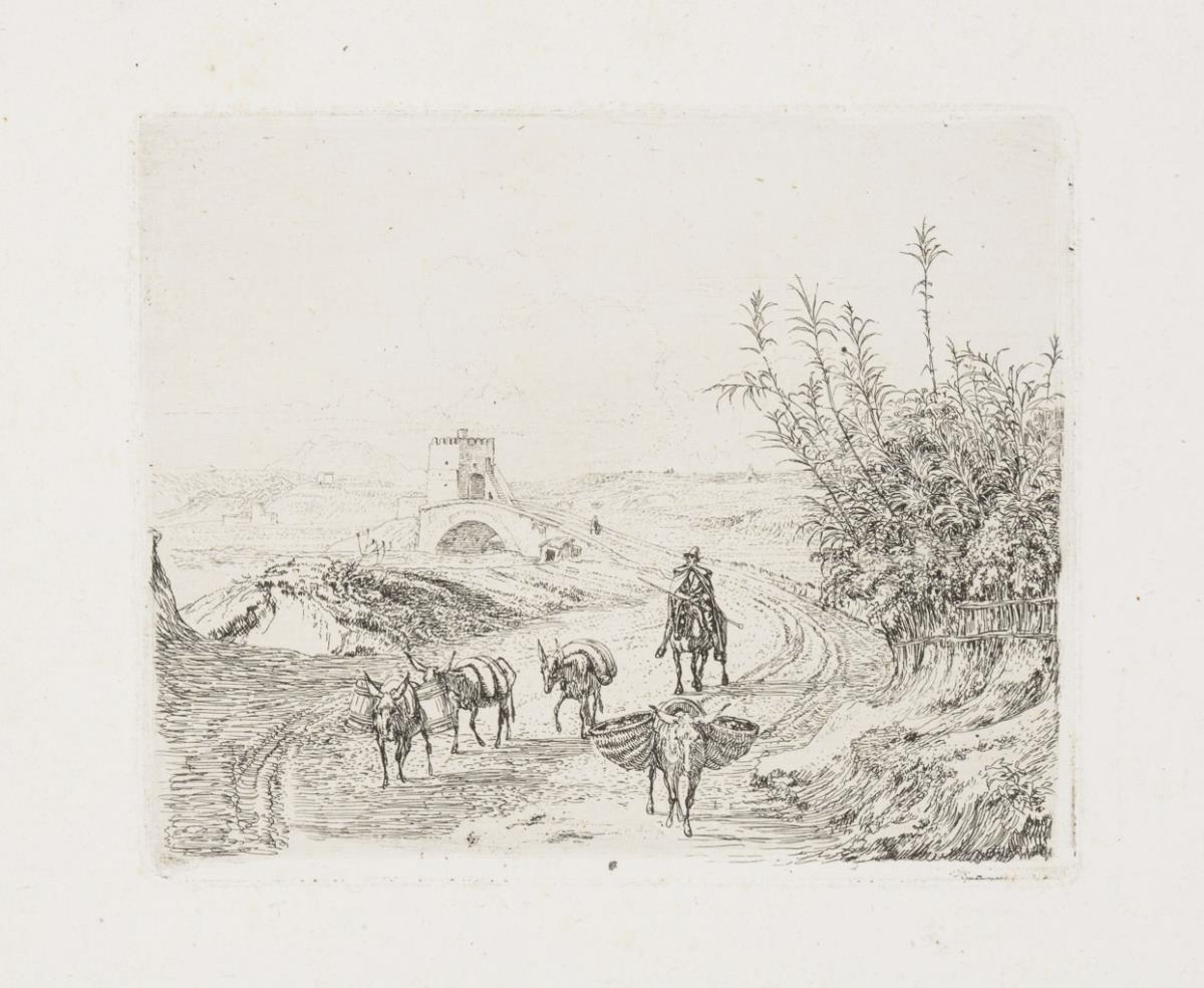 2 italienische Landschaften "Torre Cornacchia" (verso mit 2 Sammlerstempeln) und "Ponte Salaro", aus der Folge "Die Ansichten aus der Campagna di Roma".