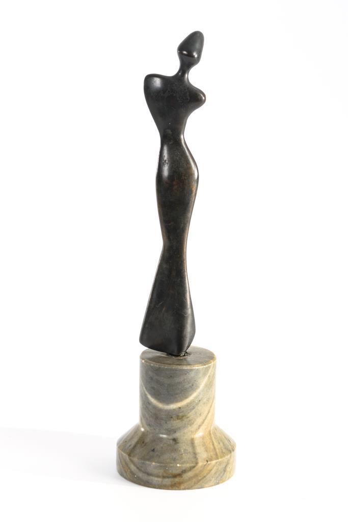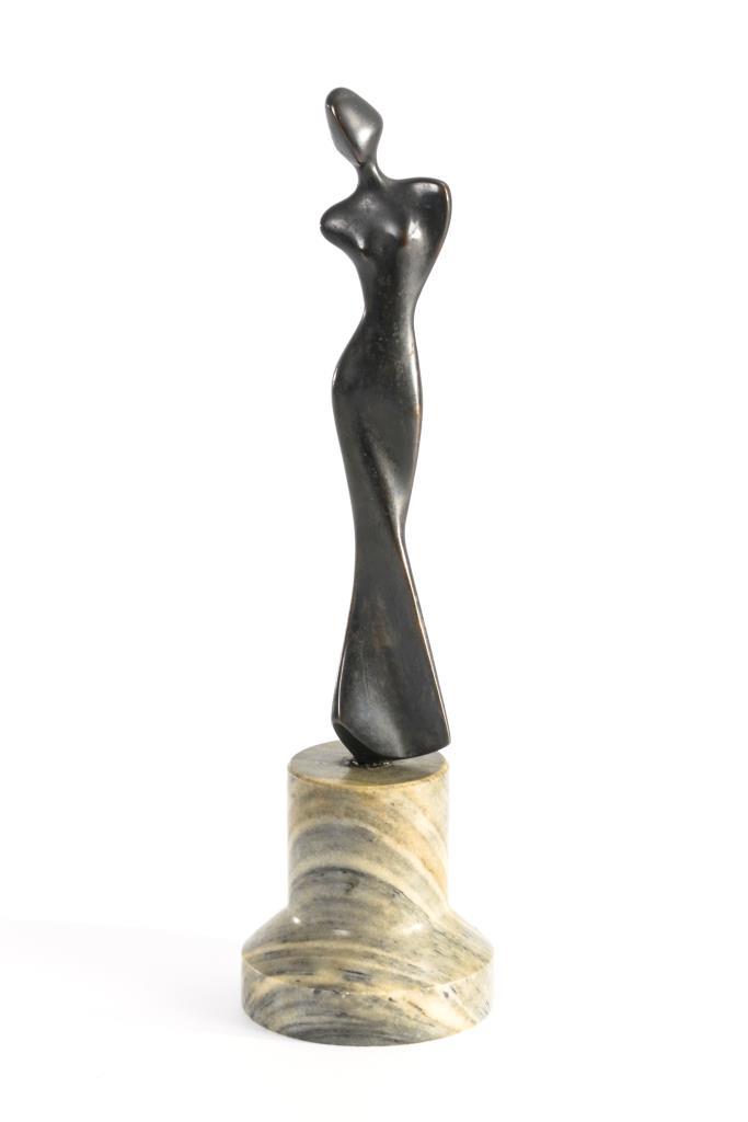 Bronze patiniert, grauer Marmor-Sockel.H 27 / 37 cm.