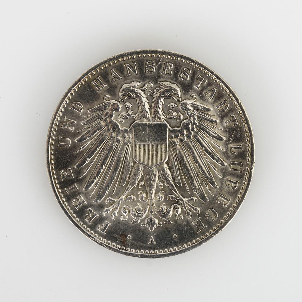 Sie befinden sich hier: Startseite Kategorien Münzen 5 Mark Lübeck