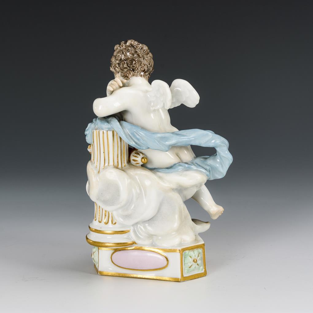 Auf einen Säulenstumpf gestützt sitzender Amorknabe.