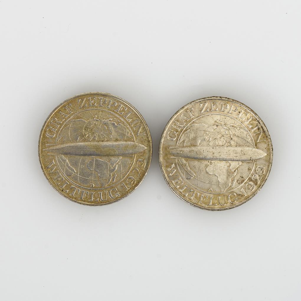 Sie befinden sich hier: Startseite Kategorien Münzen 2x 3 Mark "Graf Zeppelin Weltflug 1929"