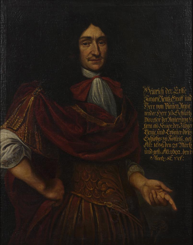 Öl/Leinwand. Unsigniert, rechts oben als "Heinrich der Erste jüngere Reuß" betitelt. 2. Hälfte 17. Jh.