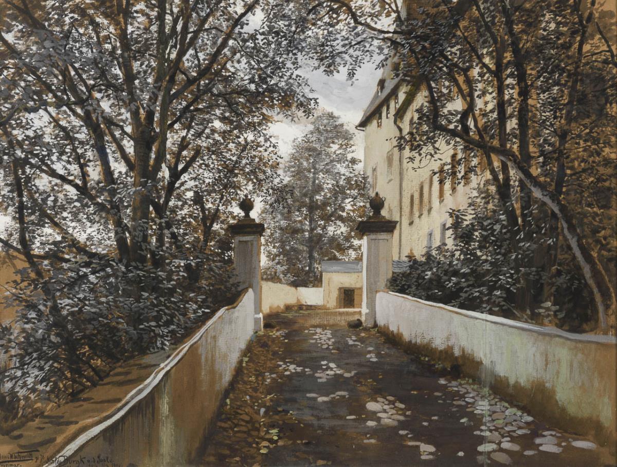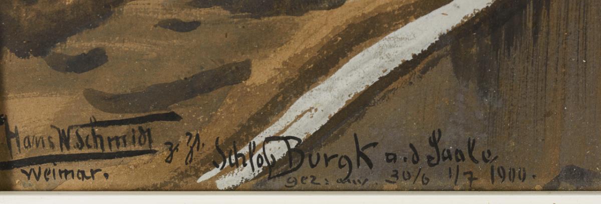 Gouache. Links unten signiert/betitelt mit Zusatz Weimar, verso vom Künstler bezeichnet/betitelt. Datiert: 30/6 1/7 1900.