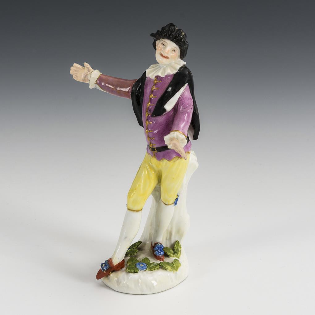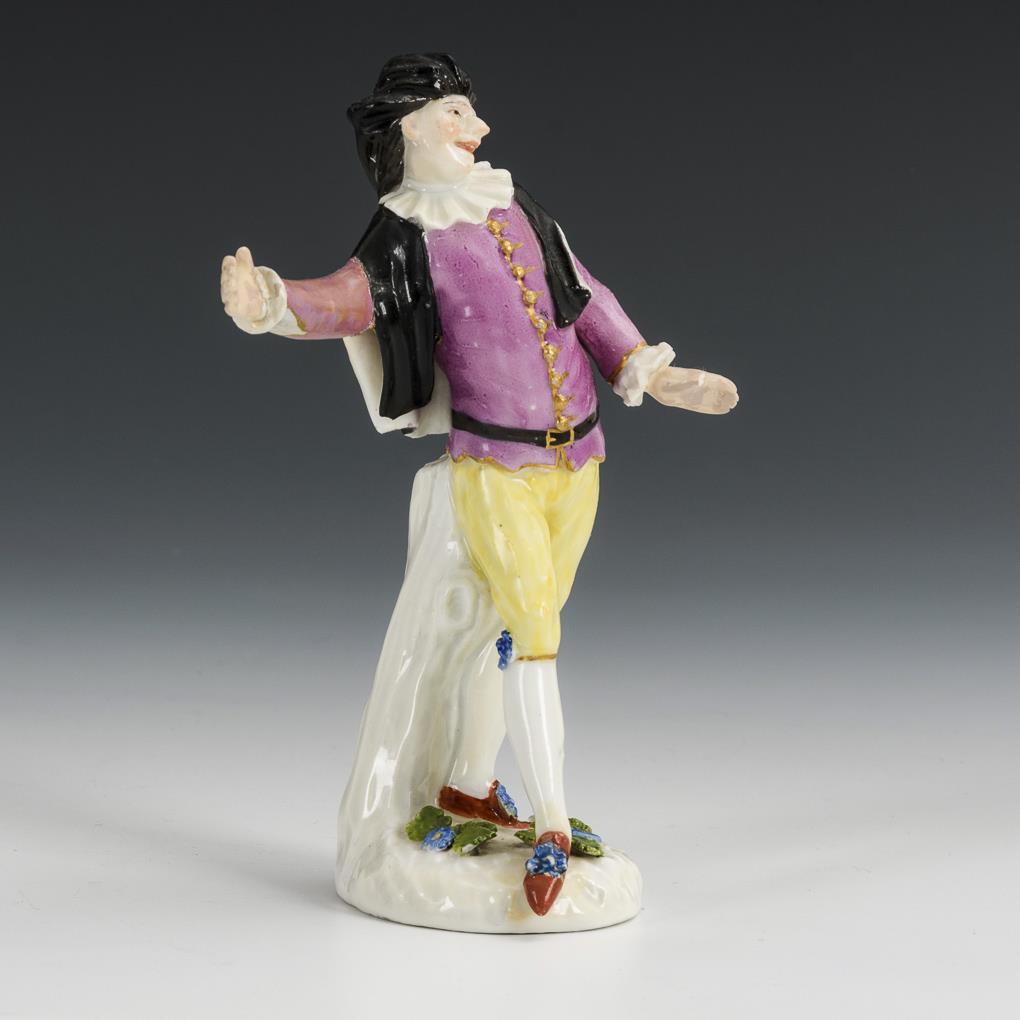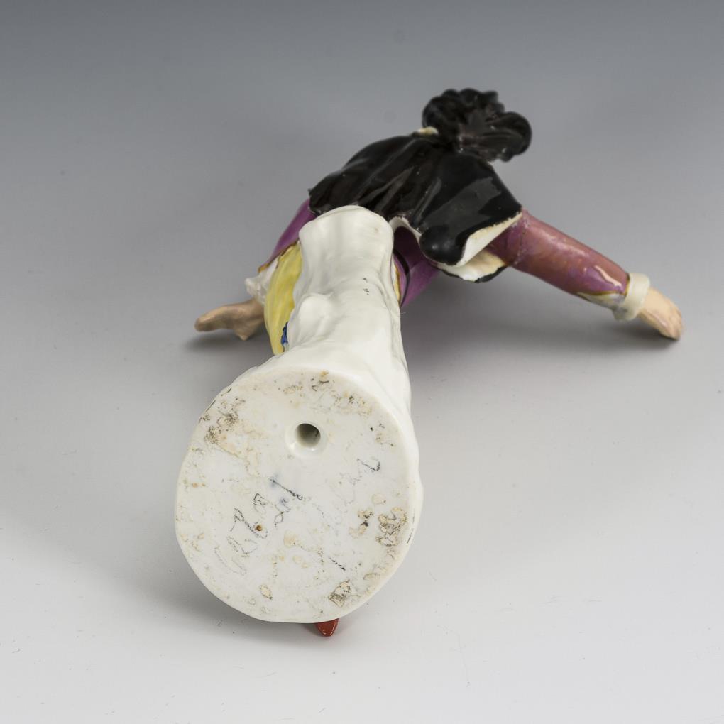 Ungemarkt, Mitte 18. Jh. Verschwommene Schwertermarke auf unglasiertem Boden. Aus der Serie der "Commedia dell'arte" für den Herzog von Sachsen-Weißenfels.
