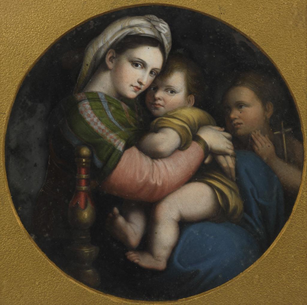 Gute Kopie nach dem Original aus dem Jahre 1514, welches heute im Palazzo Pitti in Florenz zu sehen ist. Farbabsplitterungen an den oberen Rändern.