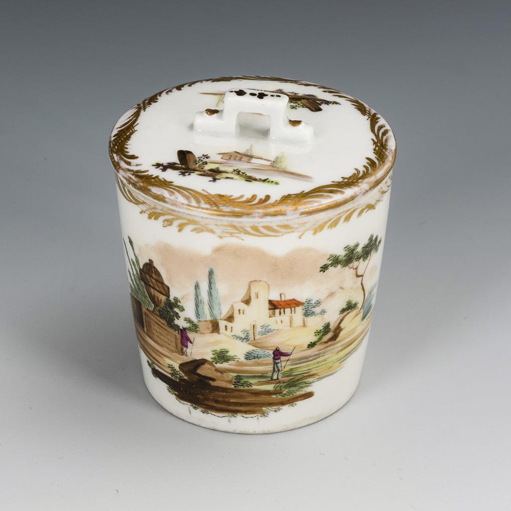 Deckeltasse mit Landschaftsmalerei. Wallendorf.