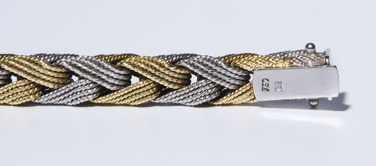 750er Gelbgold-Weißgold (18 ct). Länge: 20 cm. 54,4 Gramm.