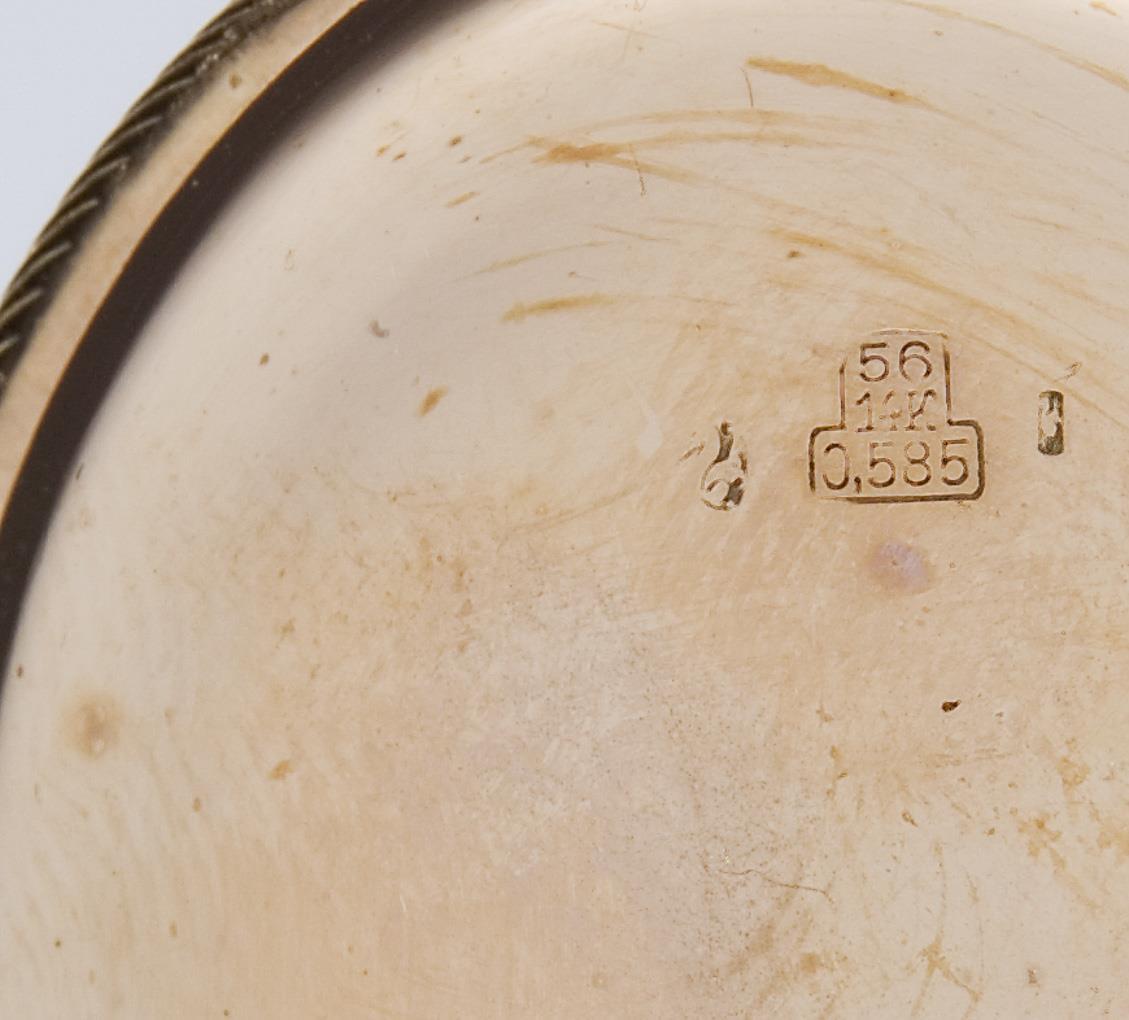 585er Gelbgold (14 ct). ø 4,7 cm. 62,5 Gramm.