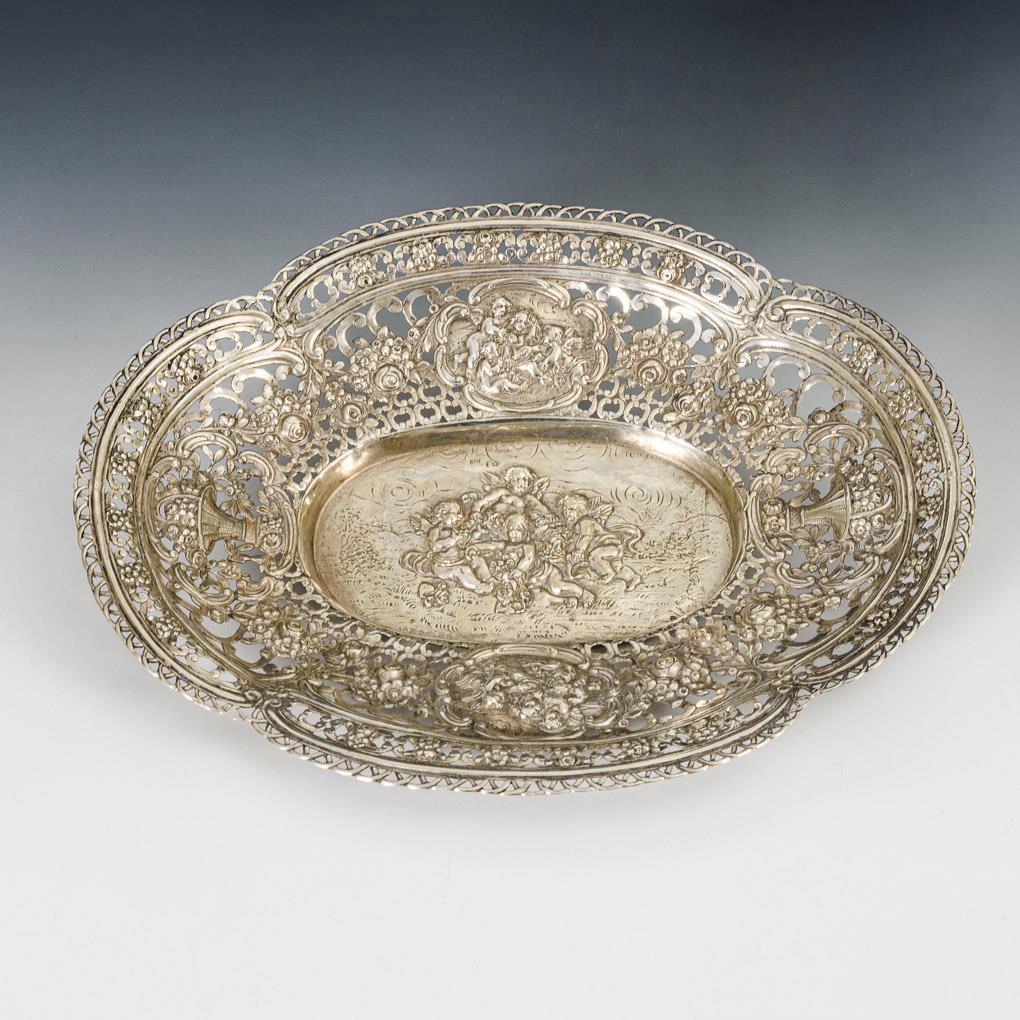 Sie befinden sich hier: Startseite Kategorien Silber Ovale Durchbruchschale mit Puttenreliefs