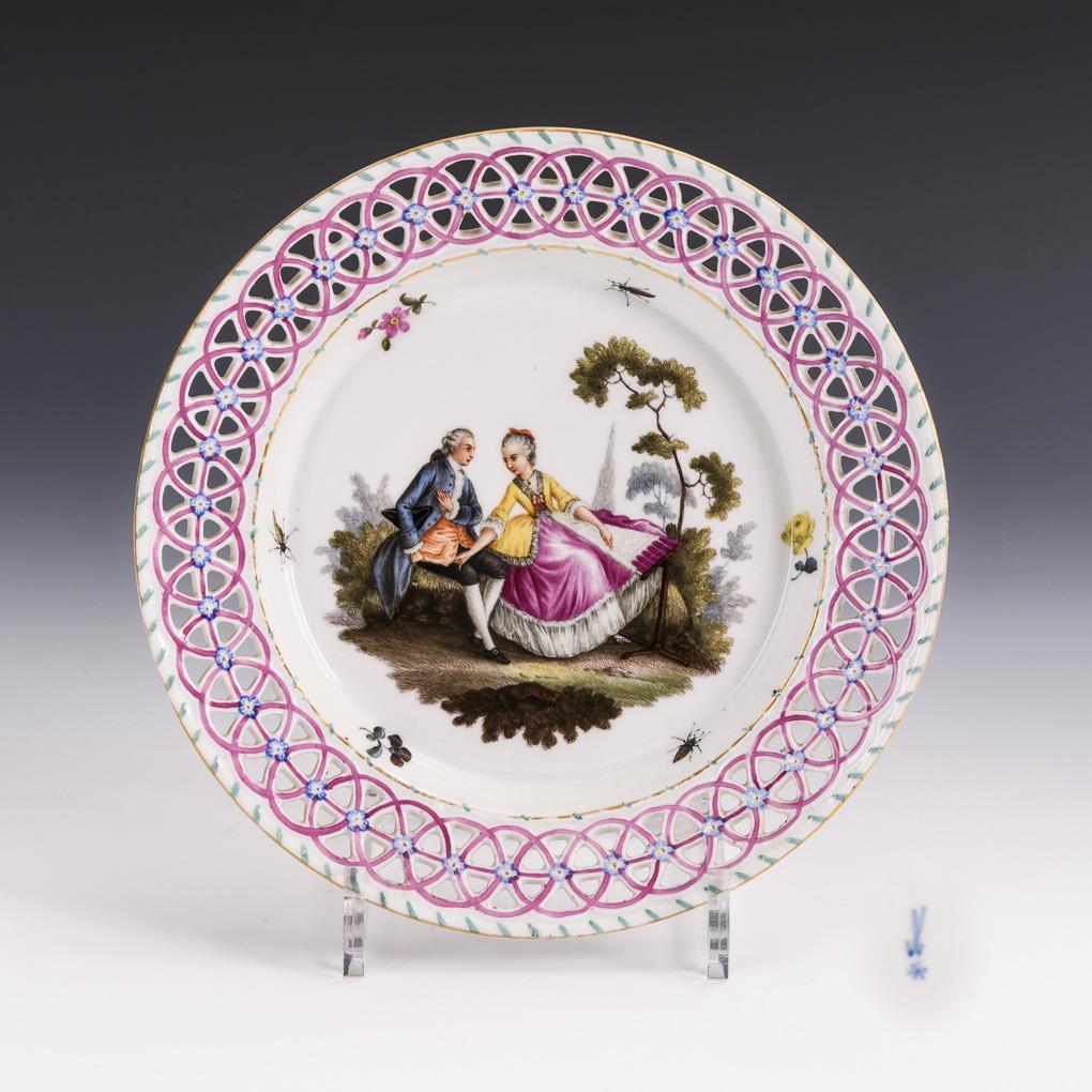 Durchbruchteller mit Watteaumalerei. Wallendorf.