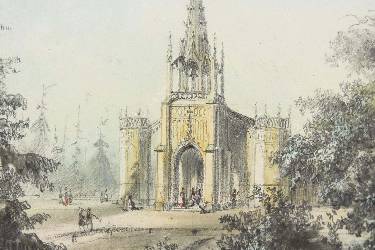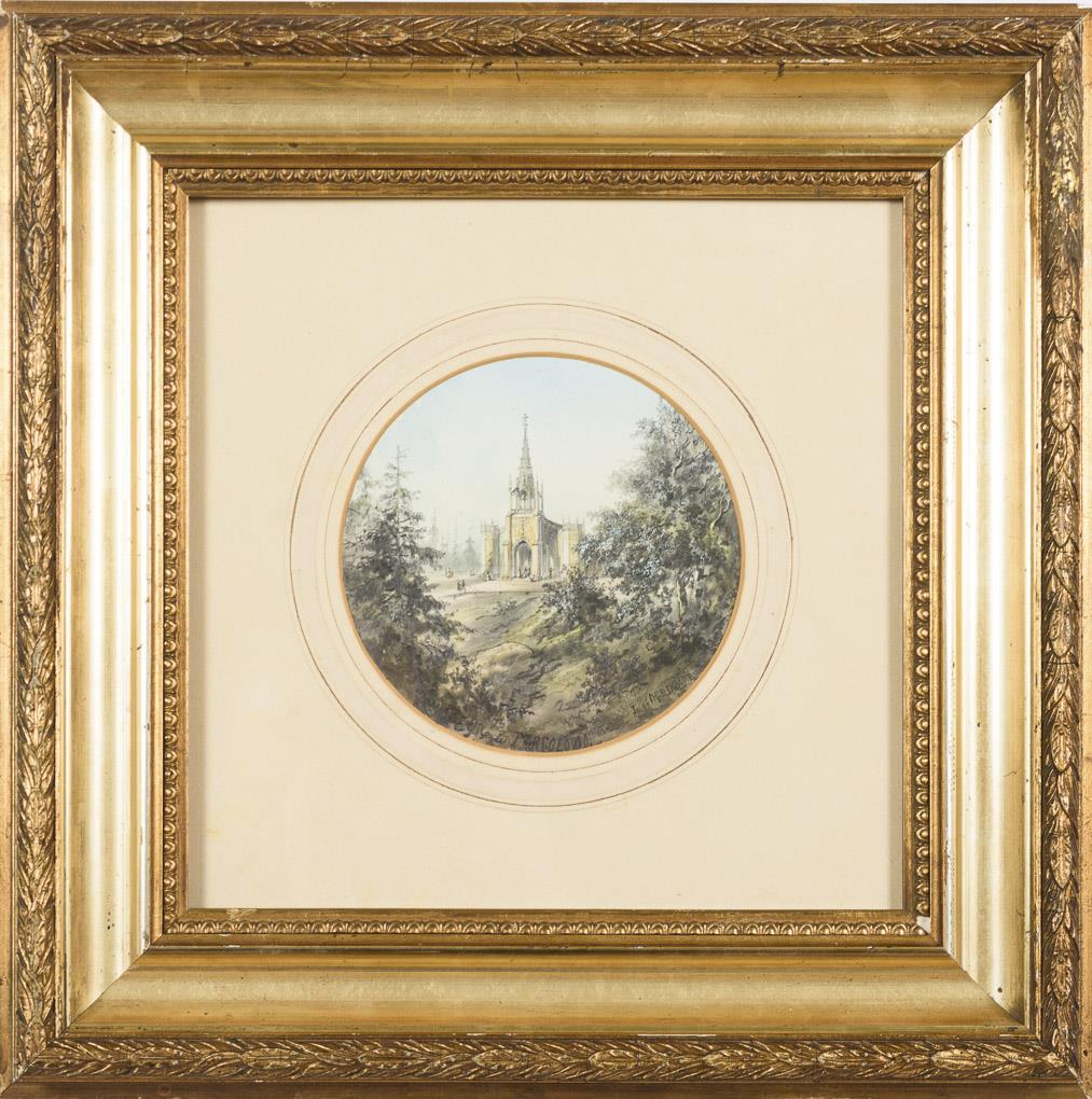 Aquarell/Gouache über Bleistift. Russland. Rechts unten mit "Joseph Charlemagne" signiert, mittig unten mit "Eglise á Pargolovo" betitelt.