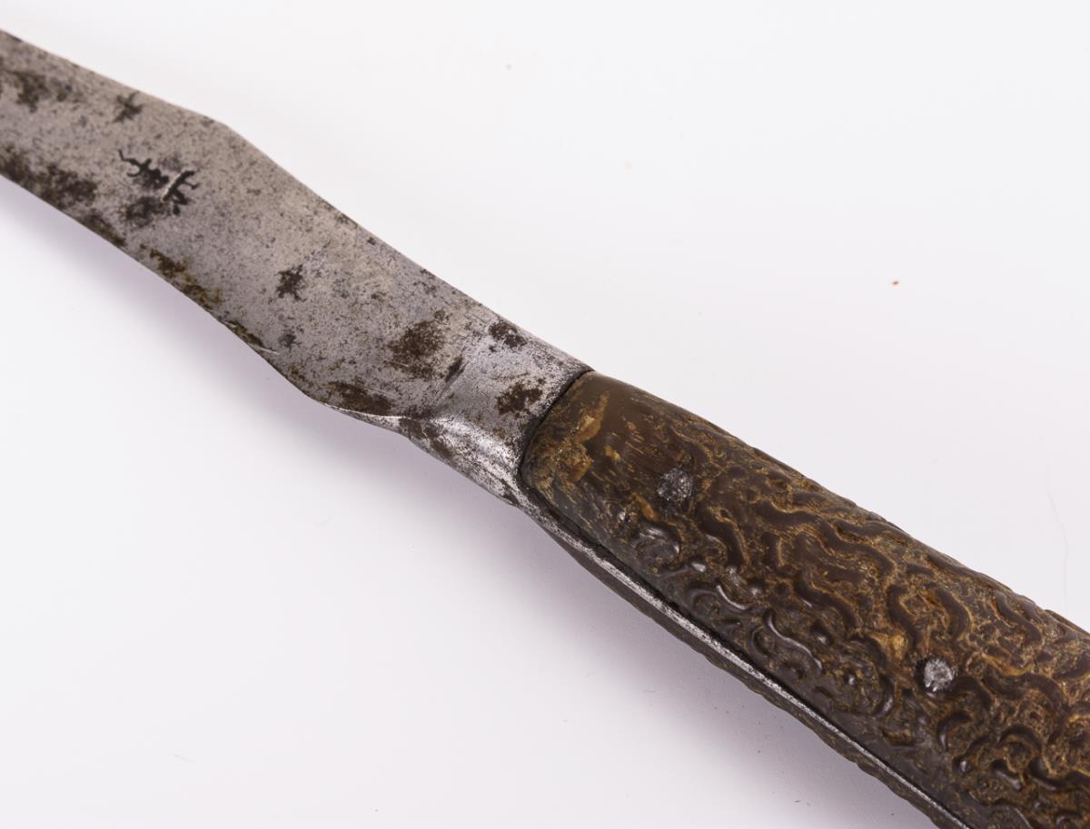Schmiedeeisen, Horn (Rhinozeros?) beschnitzt. L 22 cm.