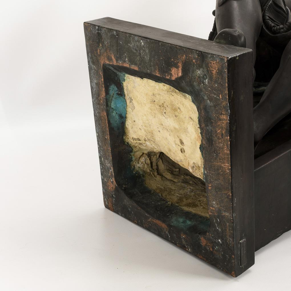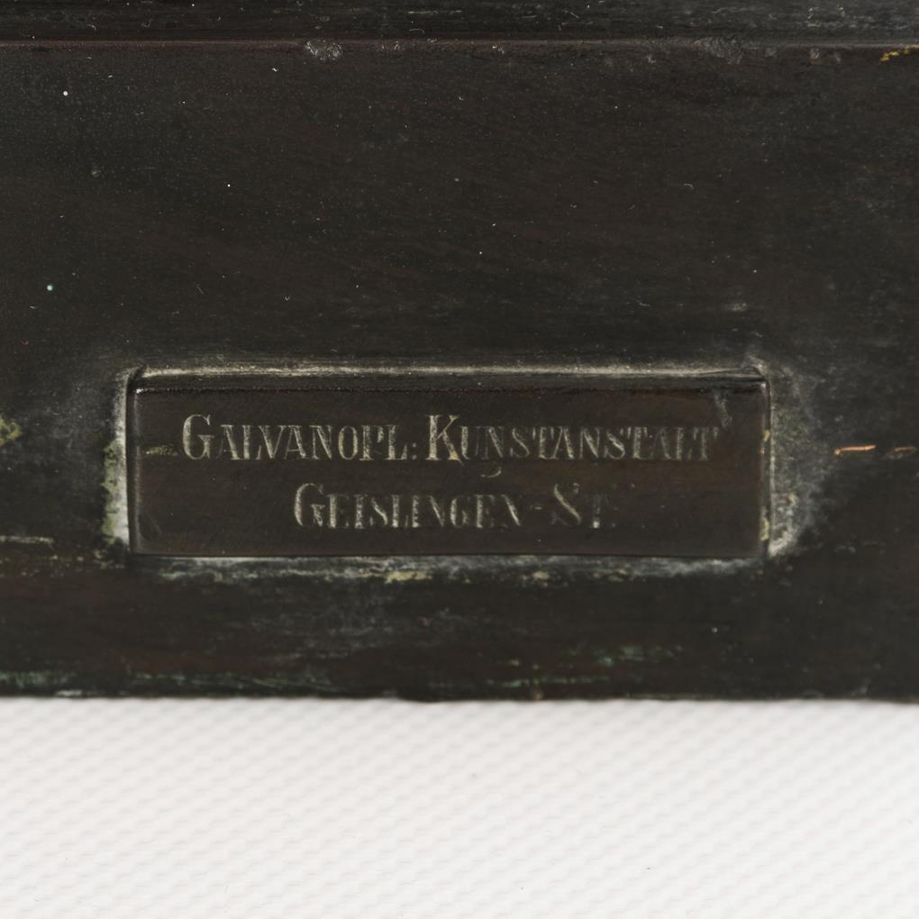 Galvanoplastik bronzefarben patiniert. Firmenplakette "Galvanopl. Kunstanstalt Geislingen-St." (WMF). 95 x 47 x 39 cm.