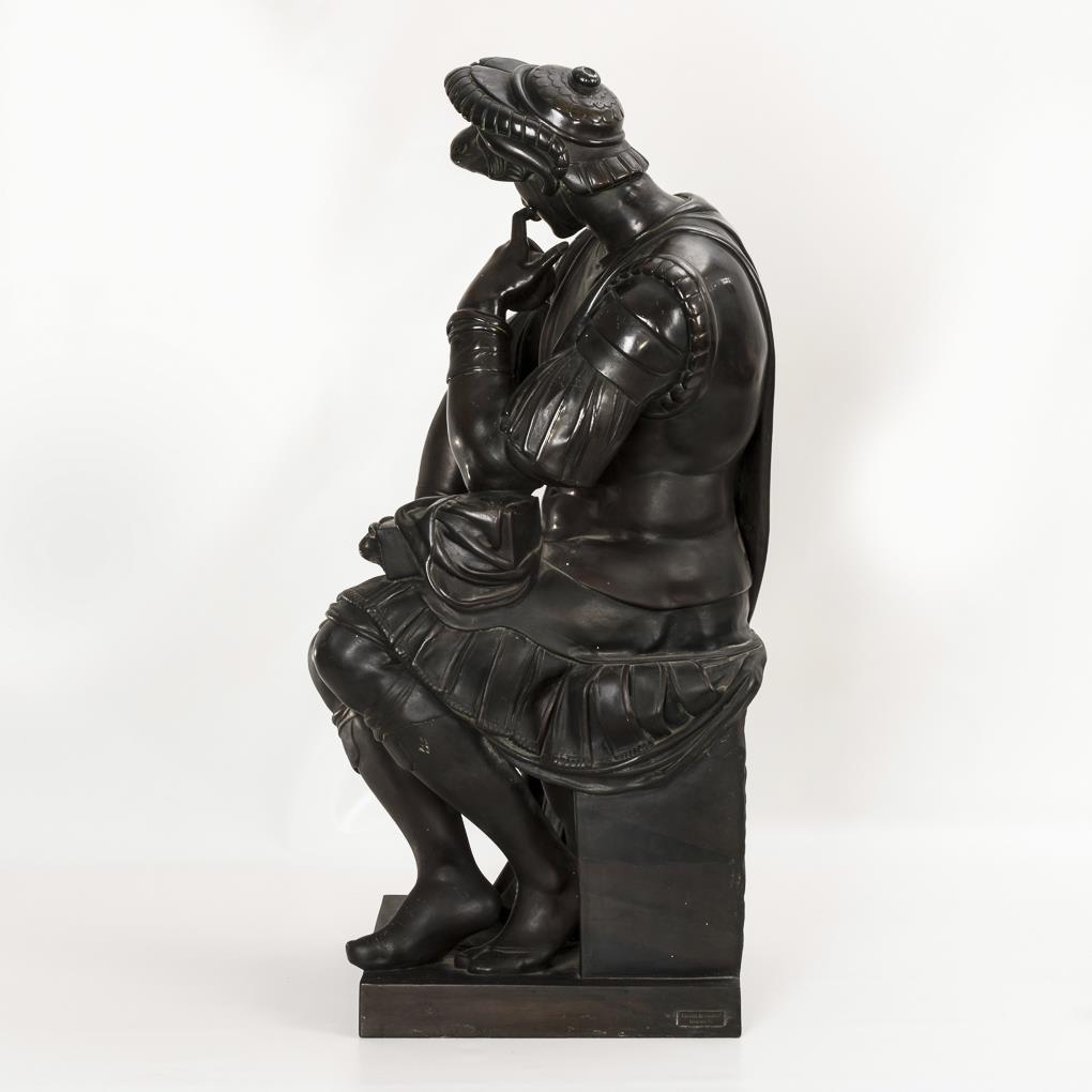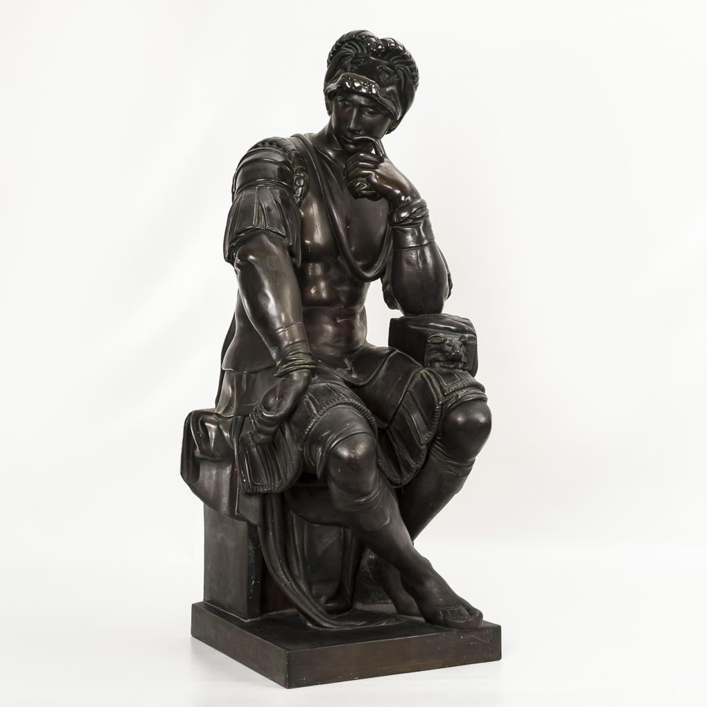 Nach der berühmten Sitzfigur von Michelangelo in der Medici-Grabkapelle in Florenz. Einige wenige Alters-/Gebrauchsspuren.