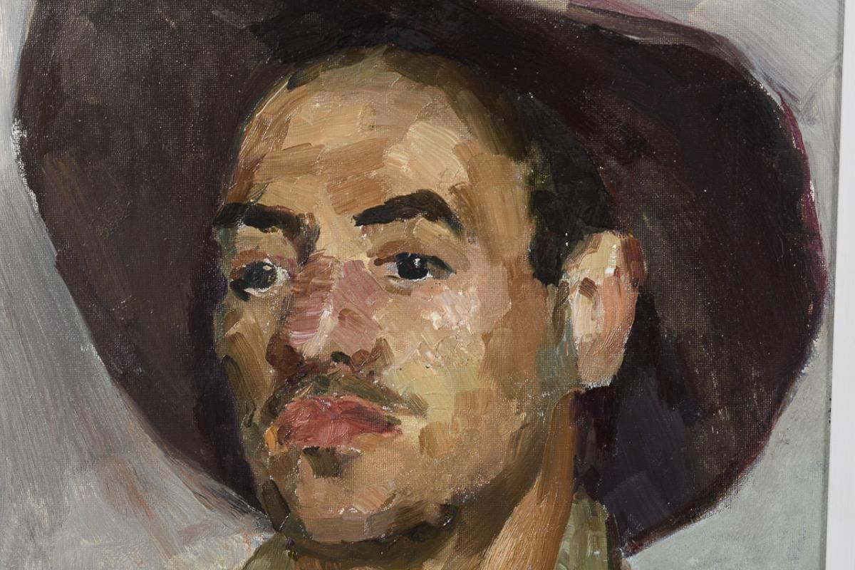 Porträt eines jungen Mannes mit breitkrempigem Hut im Sonnenschein.