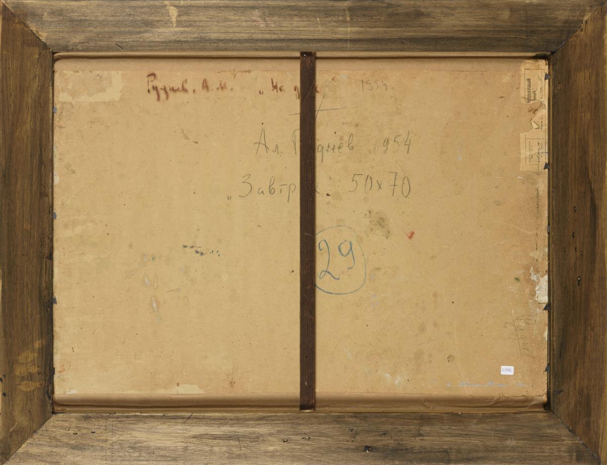 Öl/Malkarton. Rechts unten kyrillisch signiert, verso kyrillisch bezeichnet. Verso Datiert: 1954.