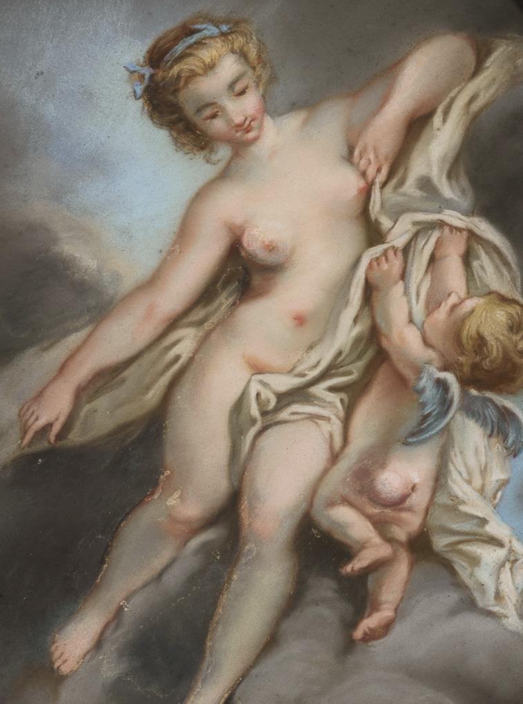 Die Göttin in den Wolken mit dem kleinen Amorknaben. Altersspuren.