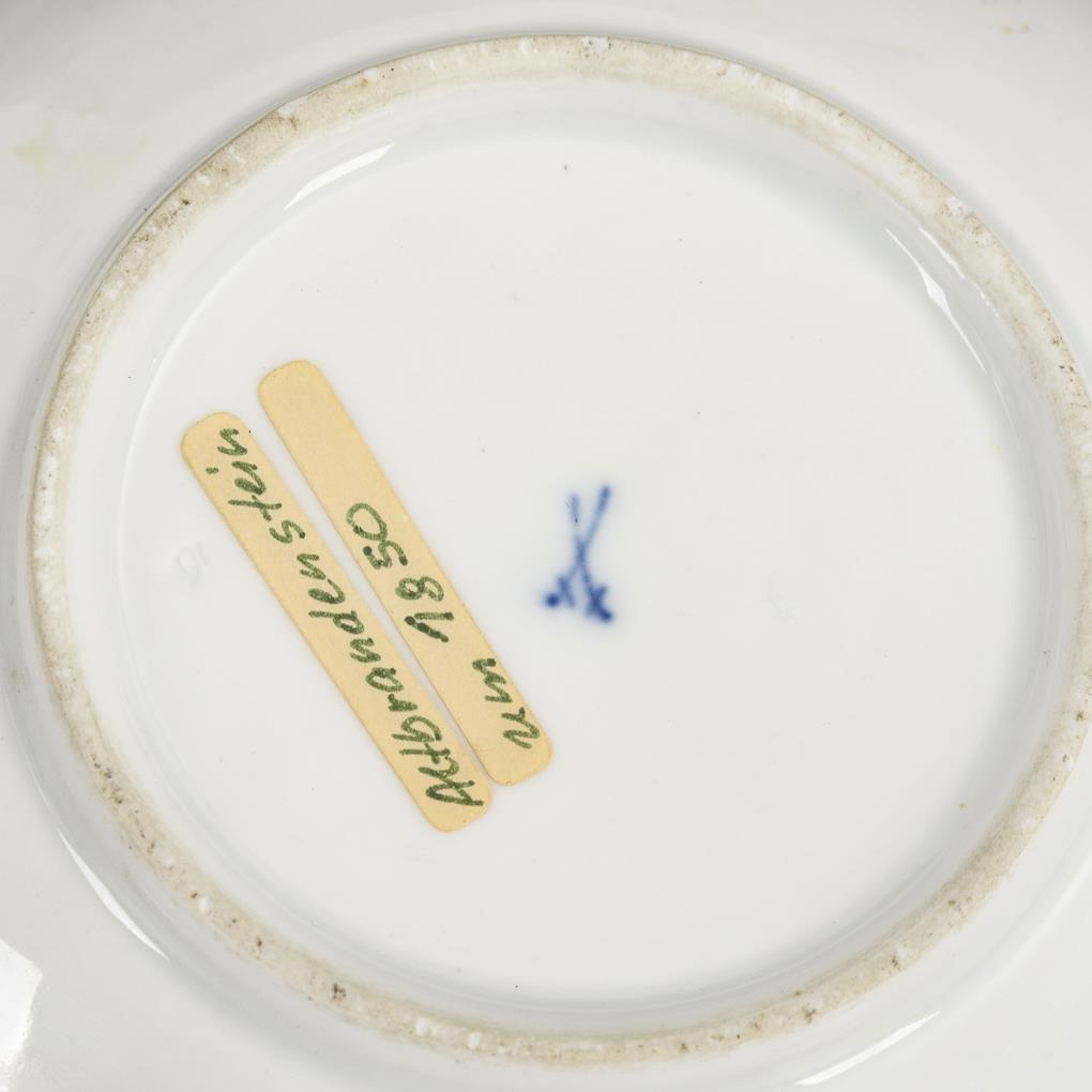 Polychrom bemalt, goldstaffiert. Ø 14 cm.