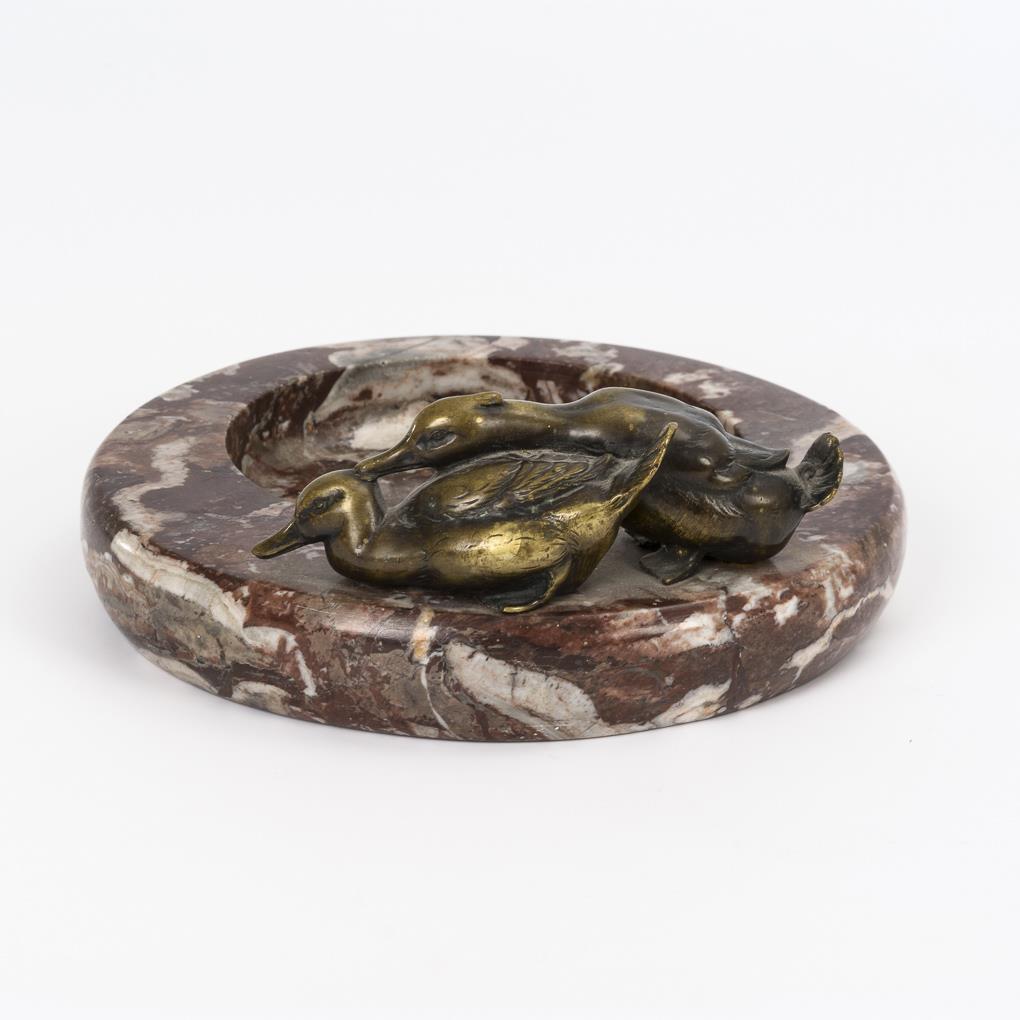 Marmorschale mit 2 Bronze-Enten