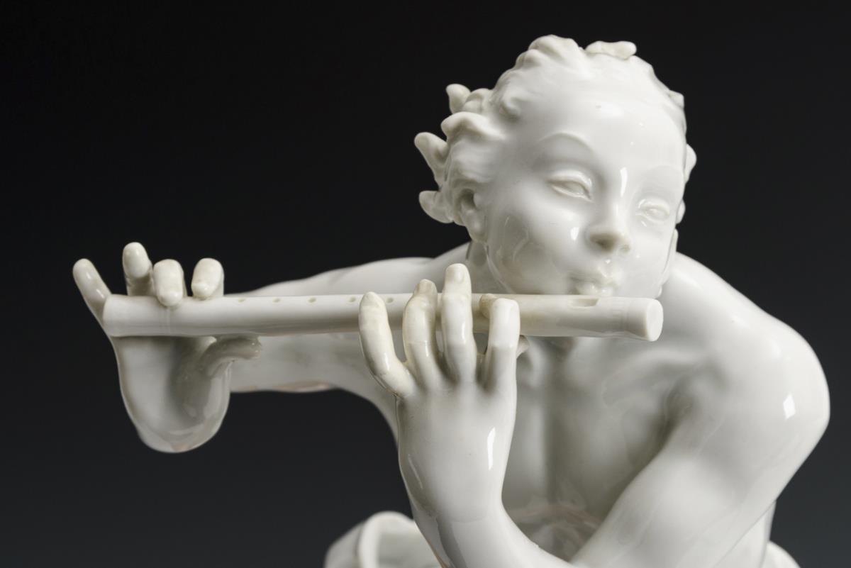 Prägeschwerter und Schwertermarke mit Punkt, Pfeiffer-Zeit, 1924 - 1934, 1. Wahl. Modell-Nr.: A 1107, Flötenspieler aus der "Sizilianischen Hirtenkapelle". Entwurf: 1926. BÖRNER, Paul(1888 Meißen - 1970 ebd.)