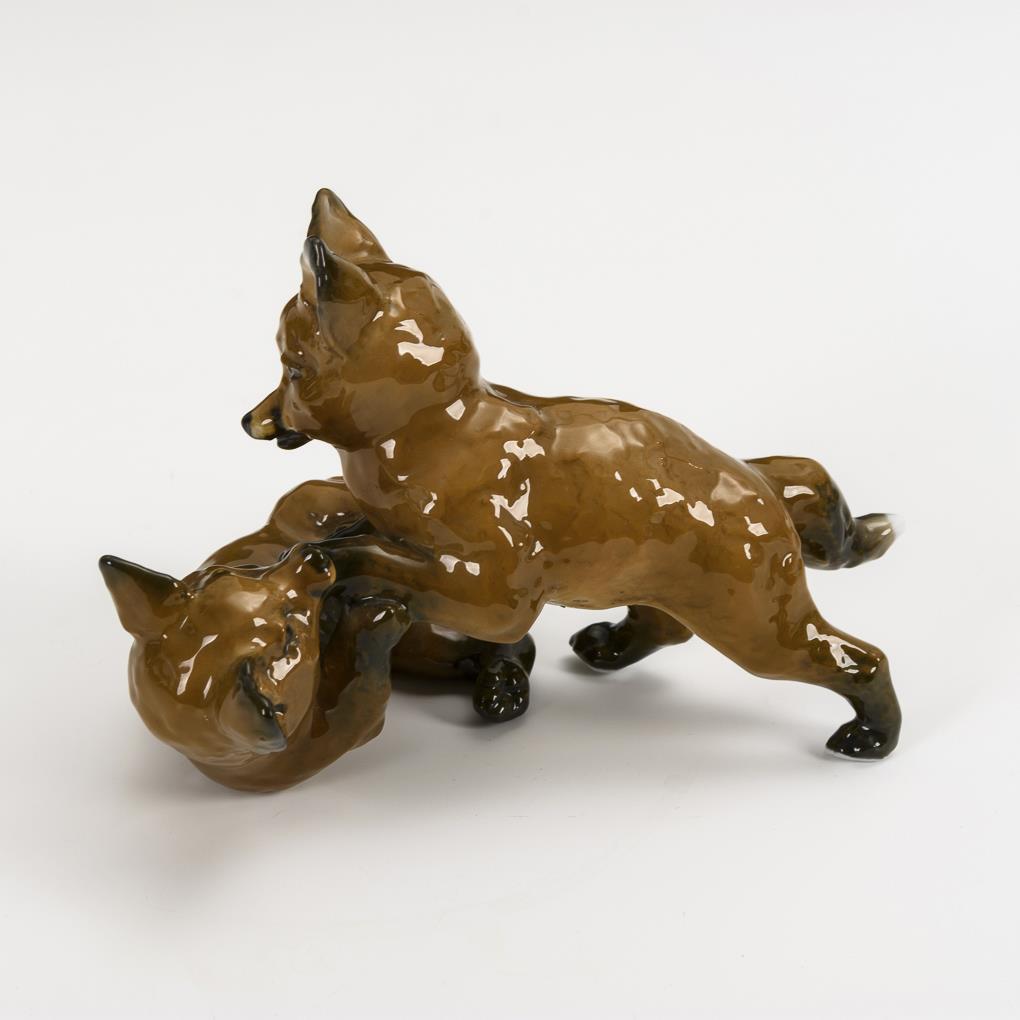 Zwei sich balgende Fuchswelpen. Unterseitig Glasurdefekt.