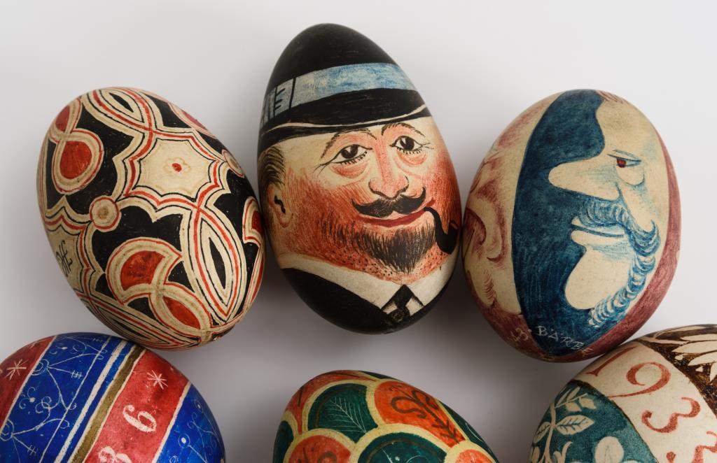 Künstlerisch gestaltete, äußerst fein bemalte, ausgeblasene Eier.