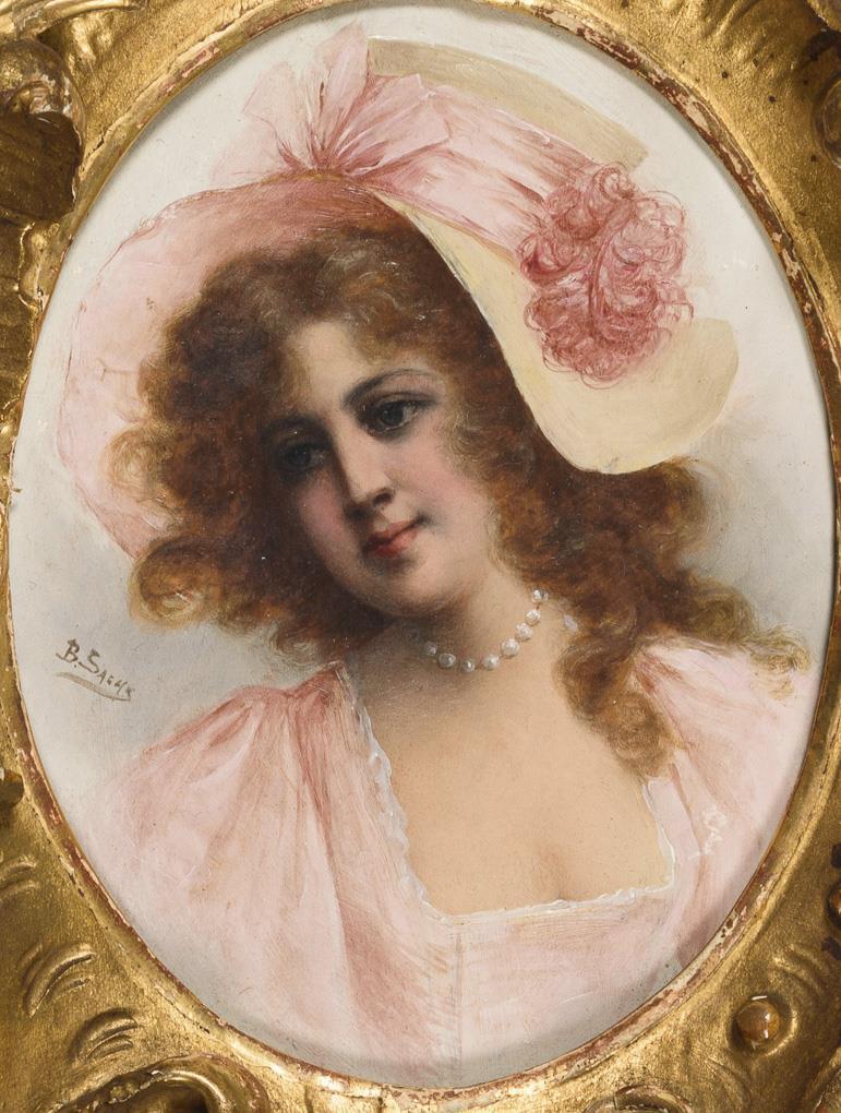 Hübsche Dame in geschnitztem Rocaillenrahmen